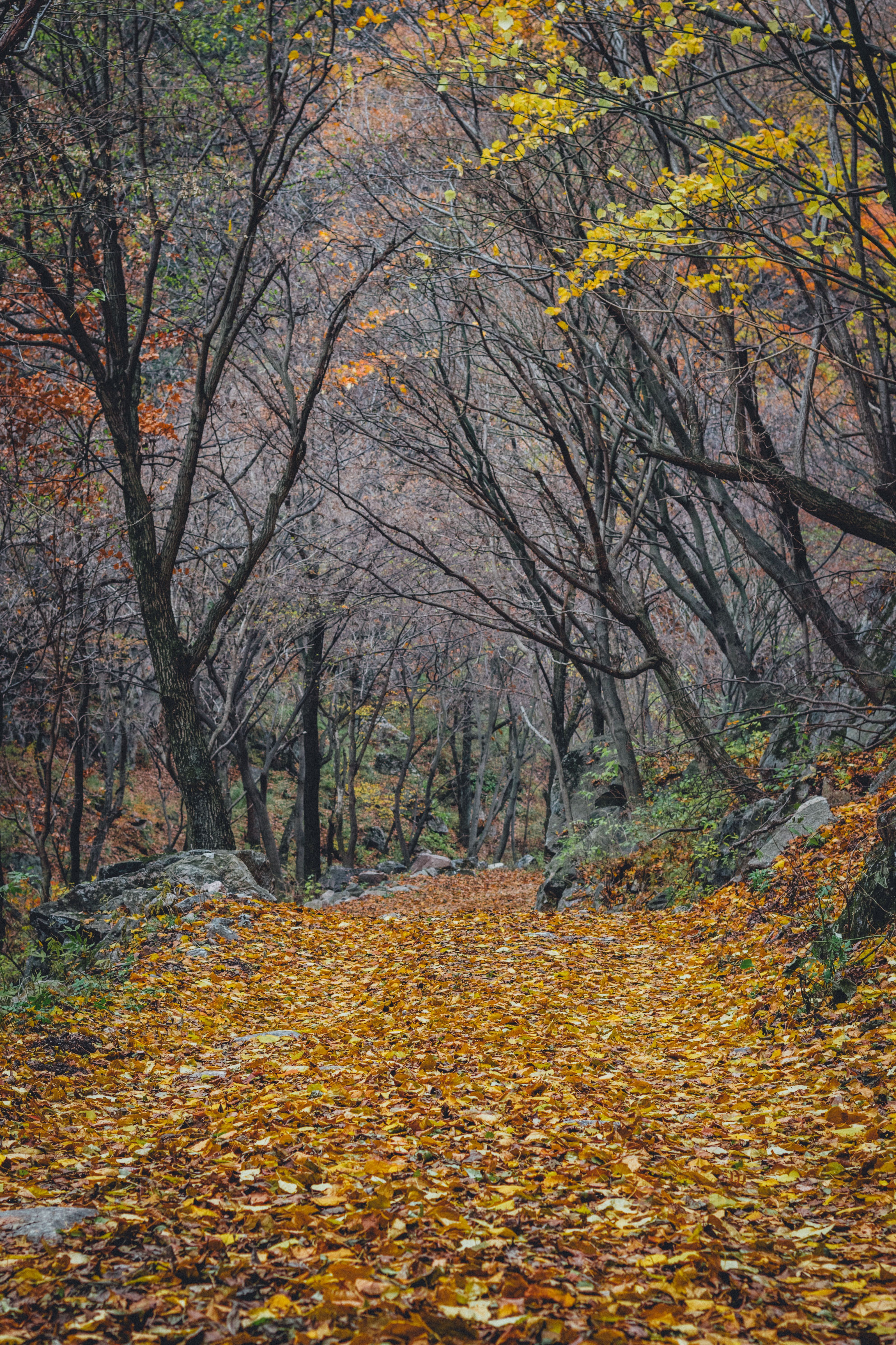 落叶铺满了路,踩在脚下哗啦哗啦的