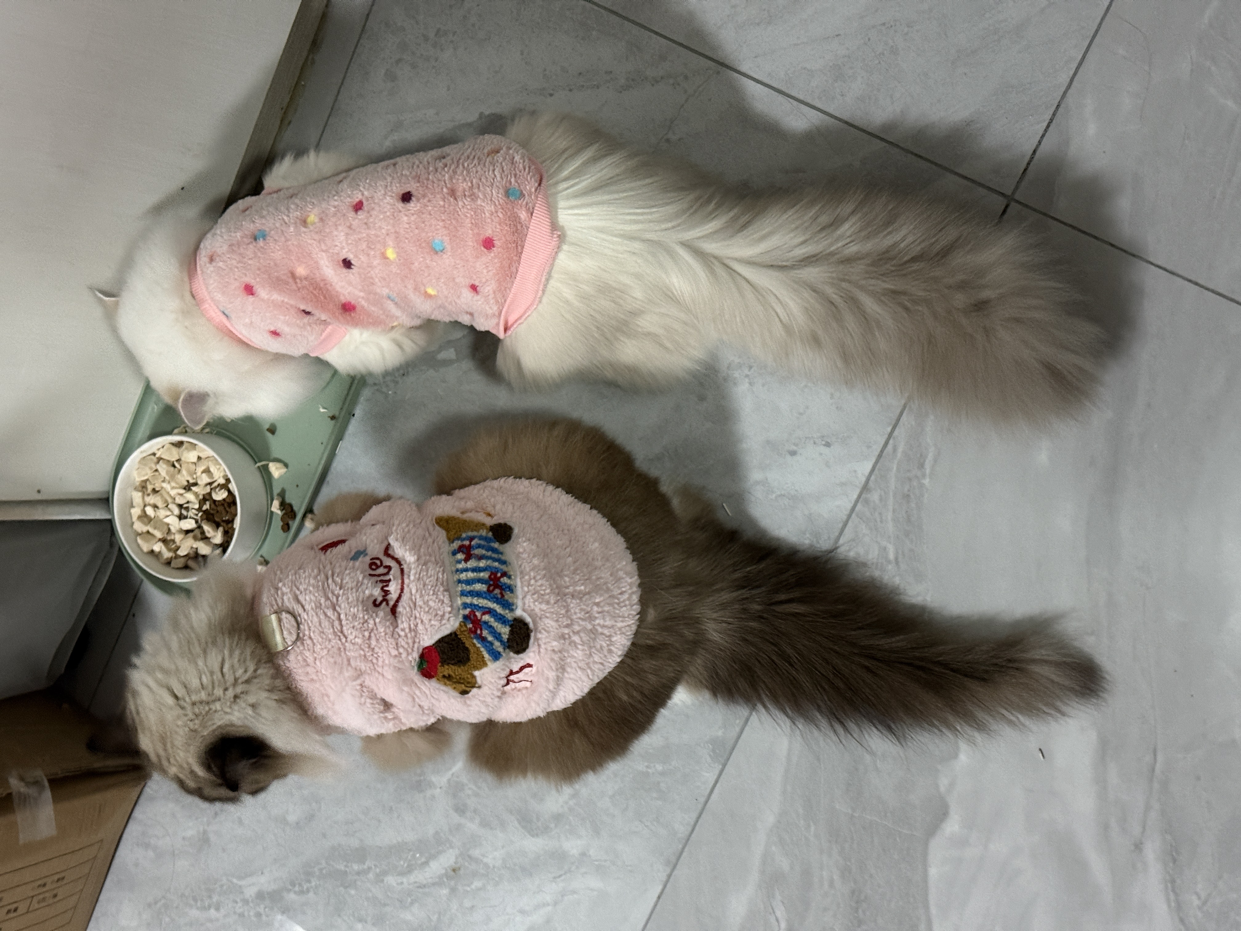 因为被借配的母猫传染了耳螨 我送去洗澡 结果把猫尾巴毛梳光了 p1设计之前 p2是洗后
