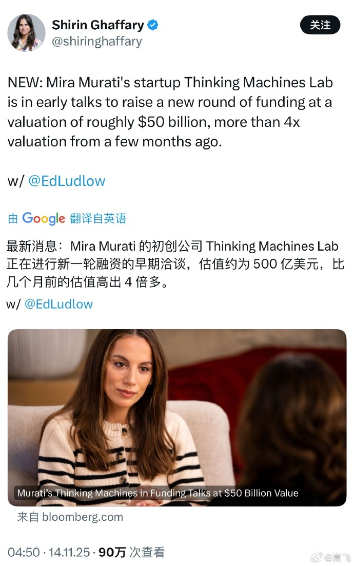 前OpenAI核心高管Mira的初创公司被认为是美国对抗中国开源模型厂商的希望所在……