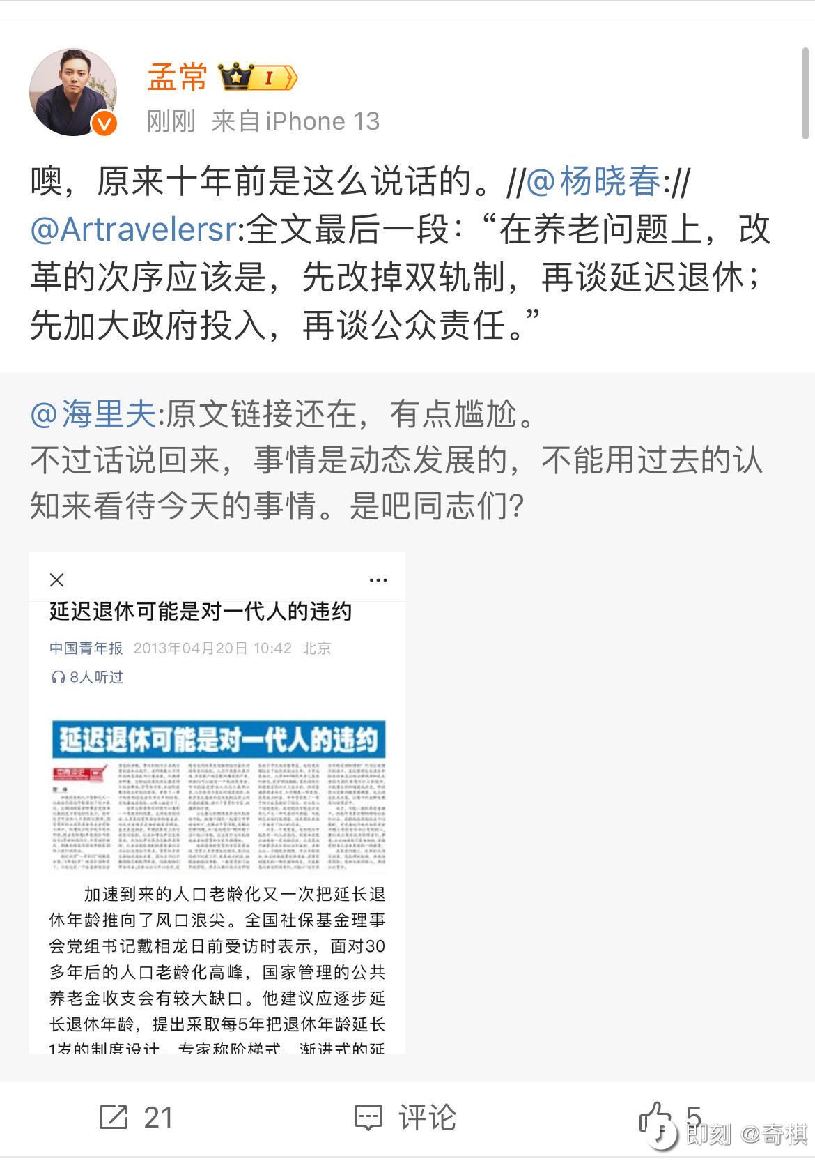 体制内的不担心失业,延迟退休无所谓,反正有工资领,体制外的四五十就没工作了,不信你把简历改成五十岁投投看?就算后面不再变卦了,六十多开始领,得活到八十多才能回本,这合理吗?都已经开始违约了,庞氏骗局又能骗多久呢,后面没人跟你玩了,暴雷是迟早的
