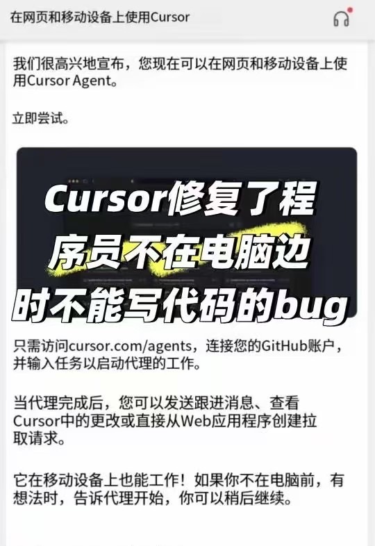 Cursor升级,马上就要实现蹲坑/通勤/睡觉也能coding了🤣