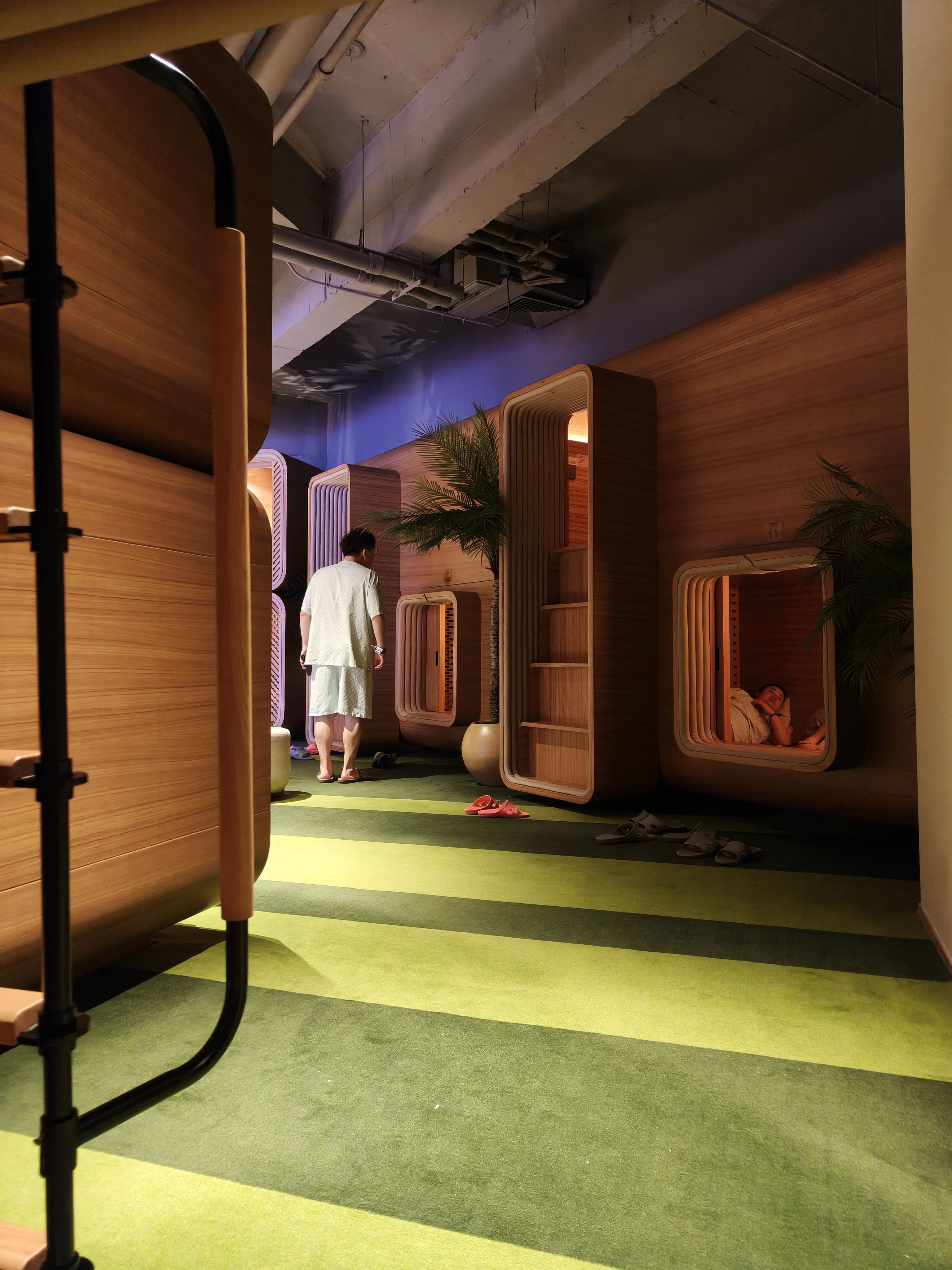 有意思,要在洗浴中心过夜,但是为了充电他就去下面守着充电宝,我在上面的隔间睡,好新奇的体验👀