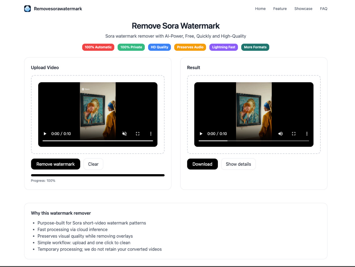 Sora视频去水印网站上线了,欢迎支持/反馈