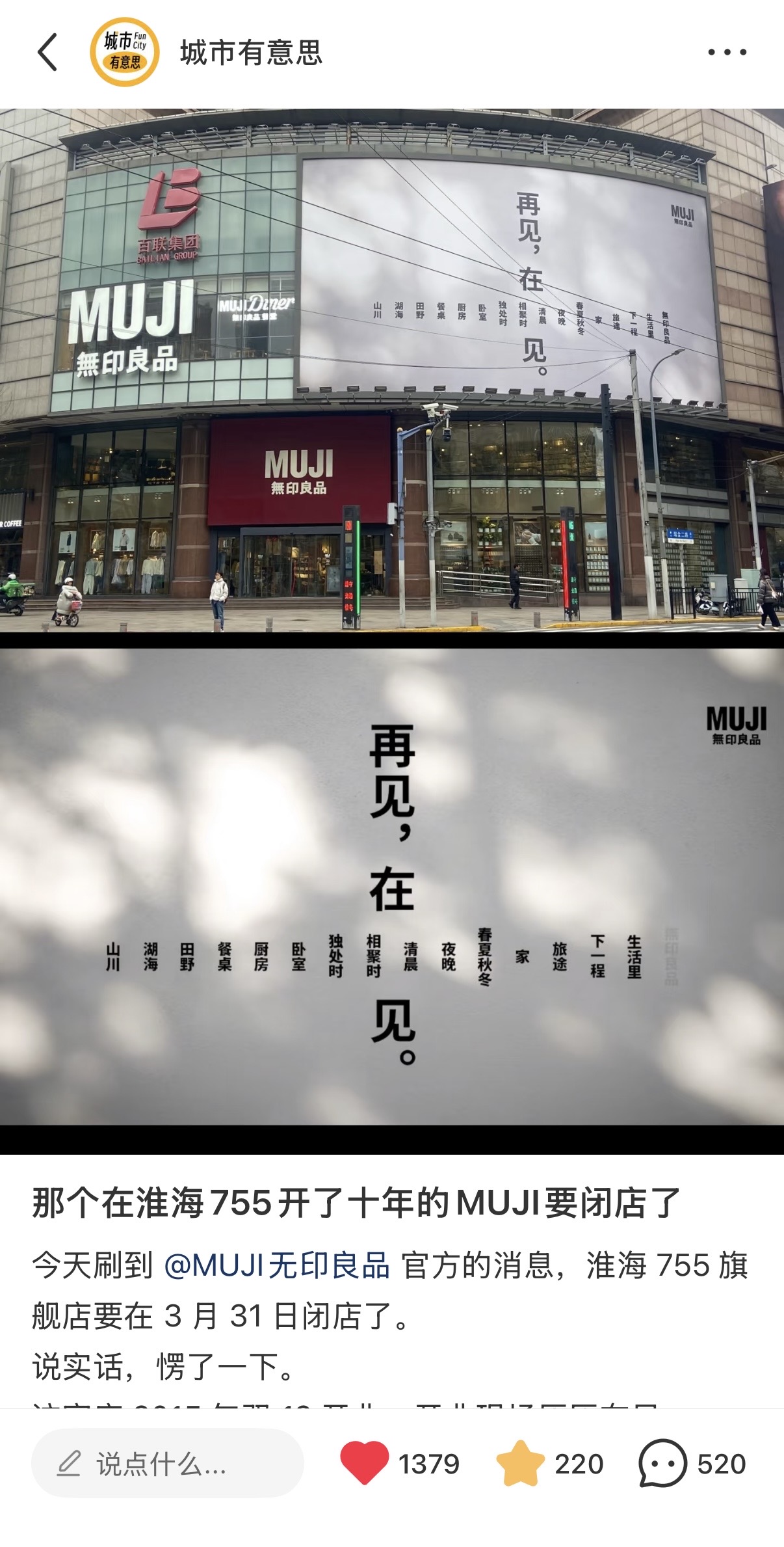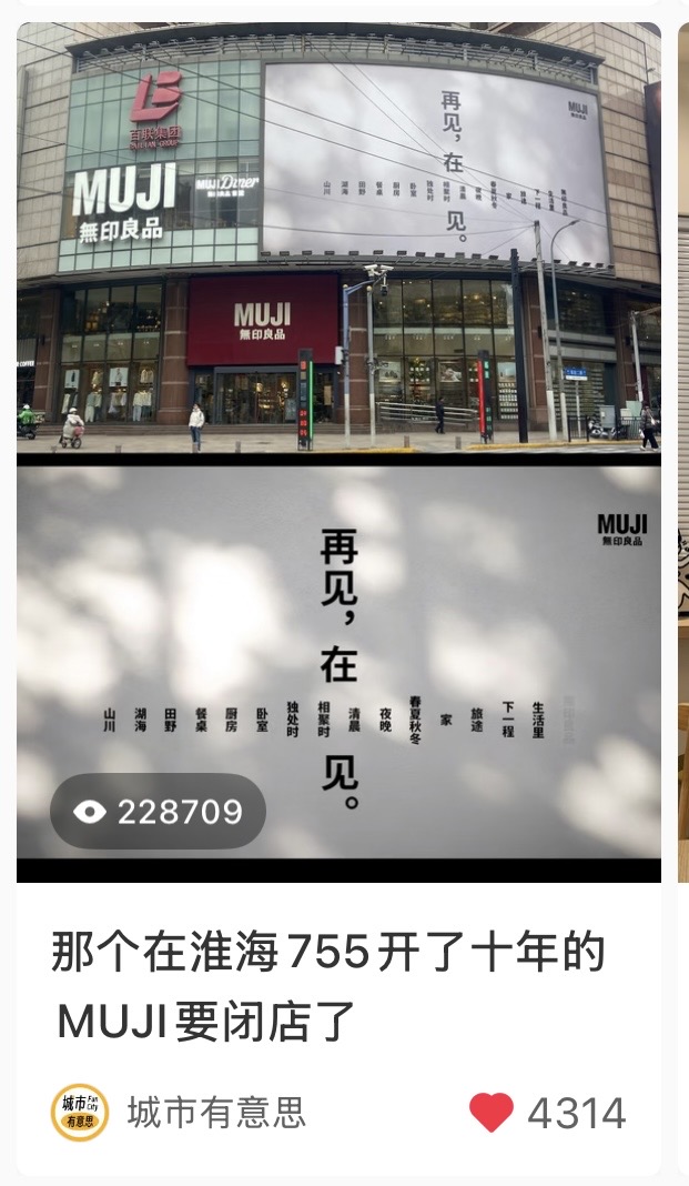 昨天随手发的这篇小红书看起来是🔥了,翻留言看了几个小时,原来这么多人都有着高度一致的生活动线,MUJI换去徐家汇的新六百可能是更好的选择。开店就是这样,经营就是这样。