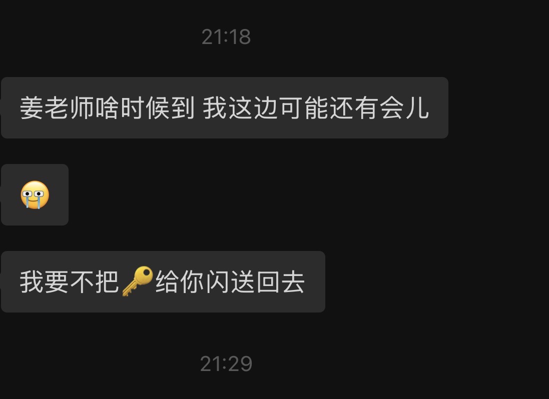 来上海去朋友家住,10点给我快递她的家门钥匙,现在12点了,她人还没回家😂😂😂