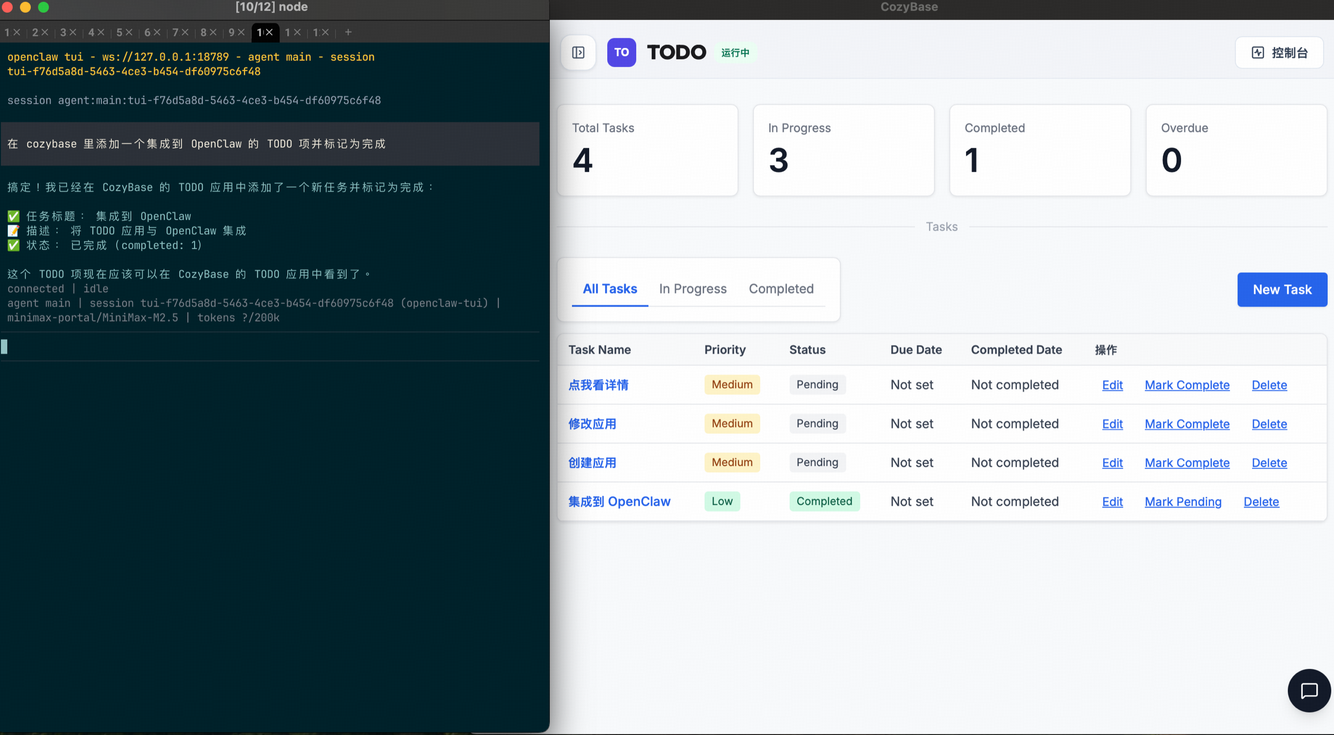 与此同时,CozyBase 支持通过 ACP/MCP 协议接入到 OpenClaw 里,也就意味着你的龙虾🦞可以帮你在 CozyBase 中创建应用、使用应用。
