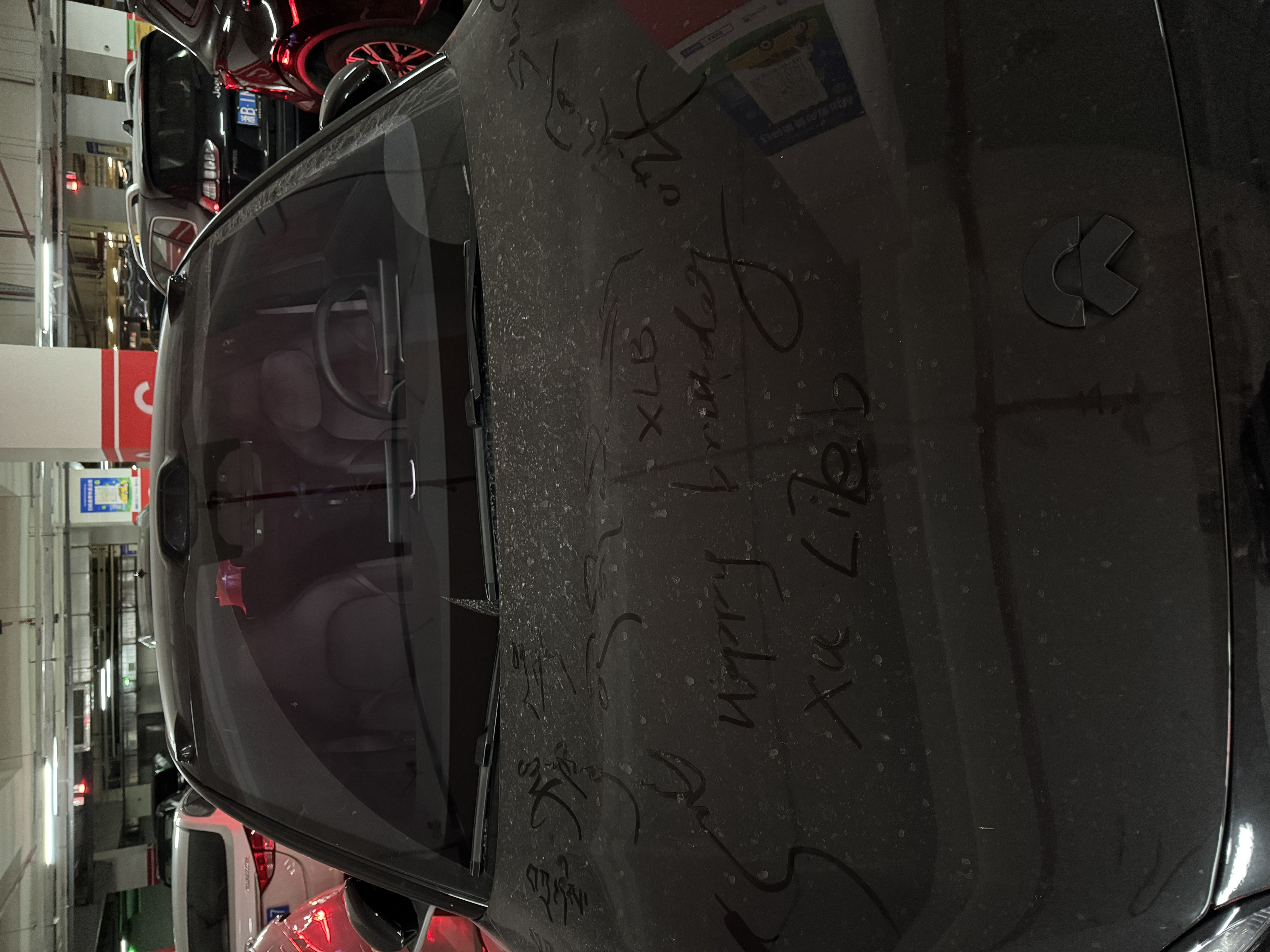 朋友在车上画了几句话