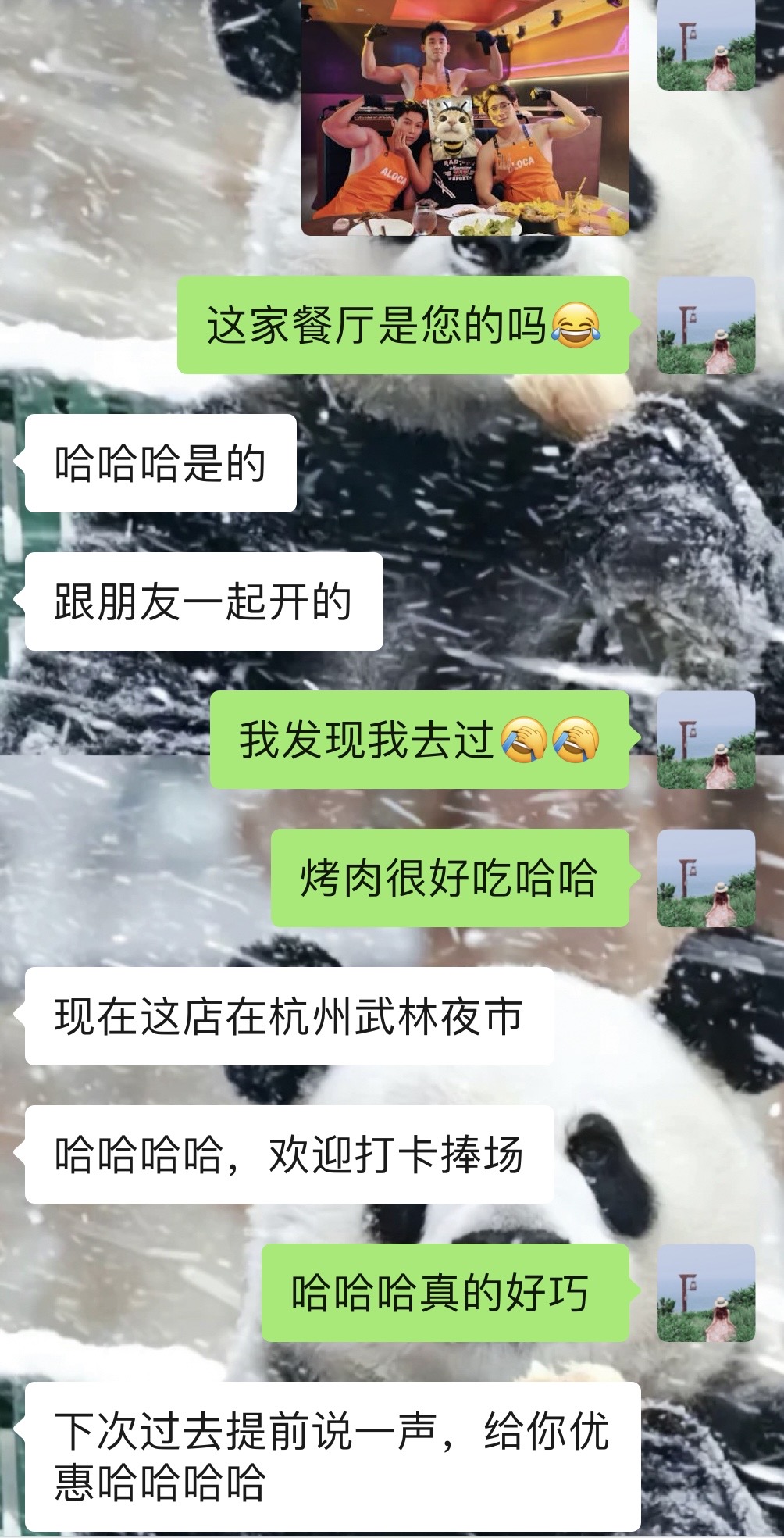之前去过的一家肌肉男主题餐厅居然是今天询价的客户开的