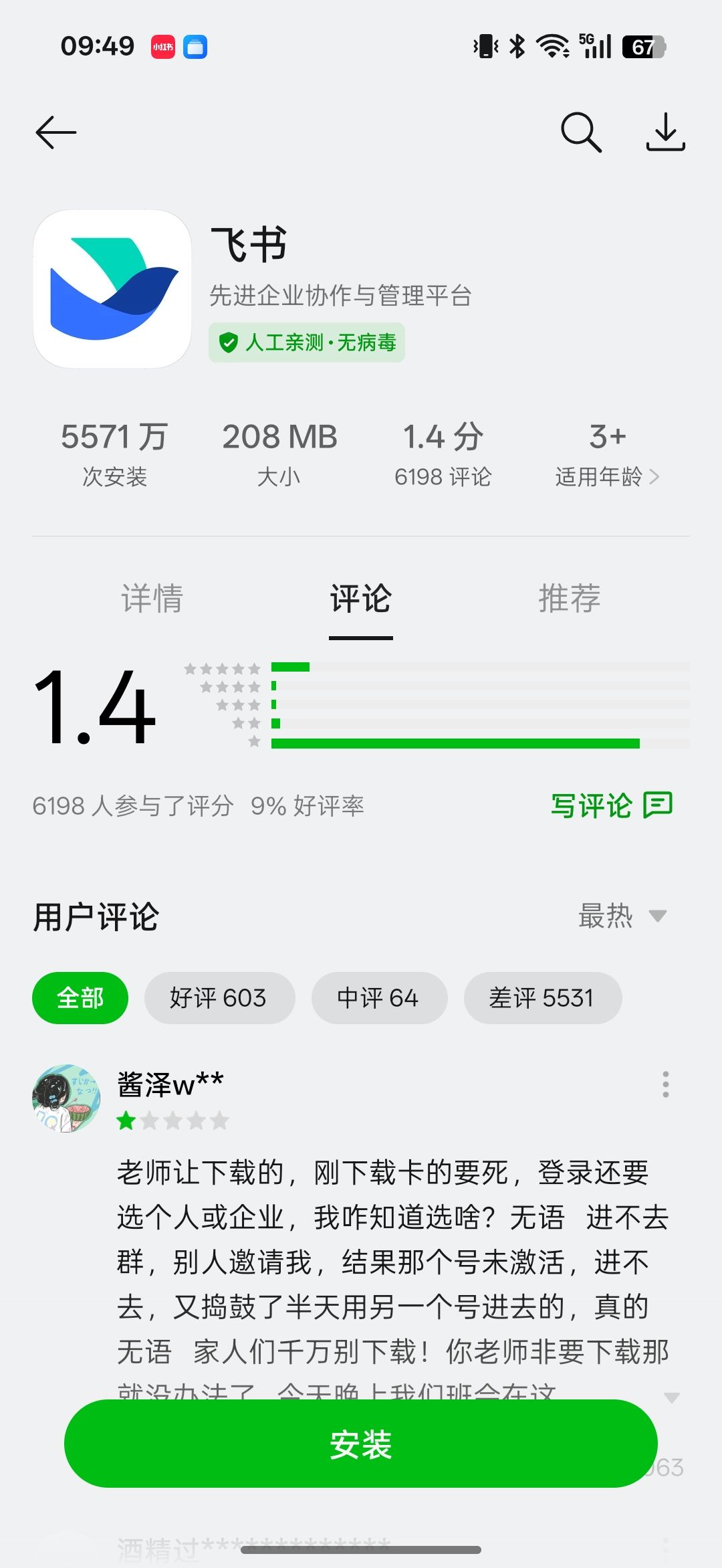 换了个备用机下载飞书,评分怎么这么低,不至于啊,我倒要看看那发生了什么😂😂