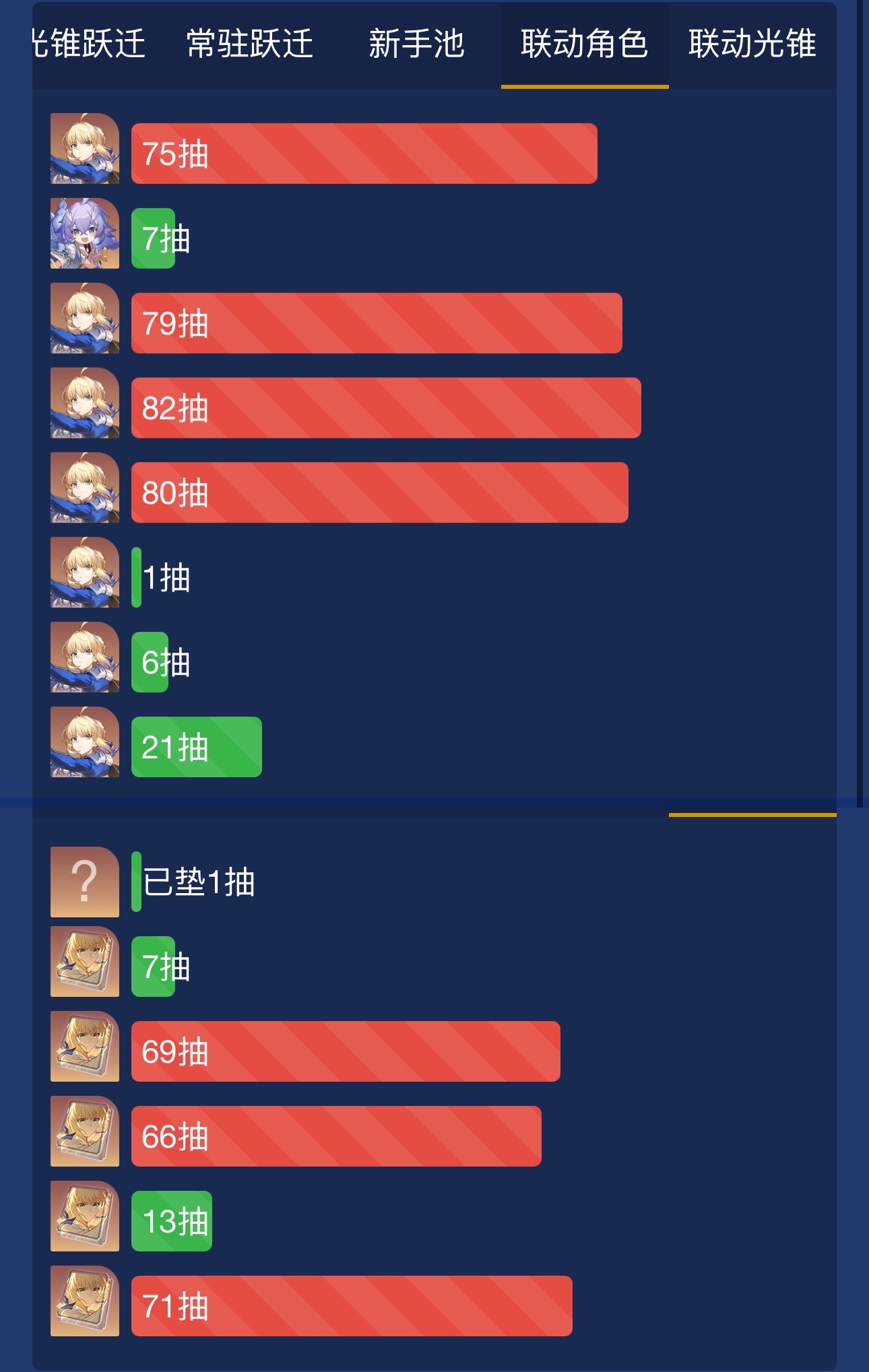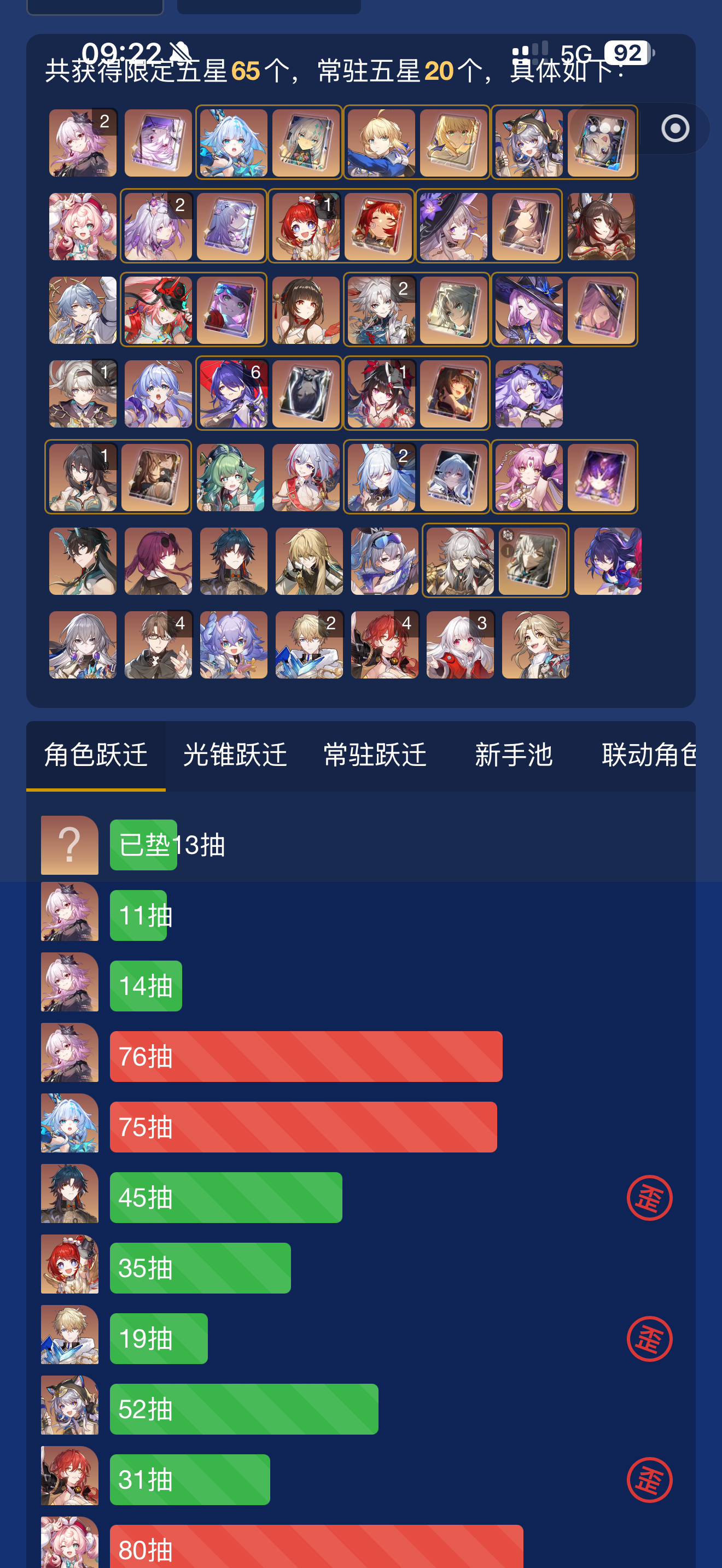 从忘归人池子囤到现在。原本计划6+1海瑟音,剩下的星琼补卡妈命座,没想到刚好花光星琼把卡妈6命给捞出来了,算是很欧了。歪的角色符玄,刃,希儿还全是new