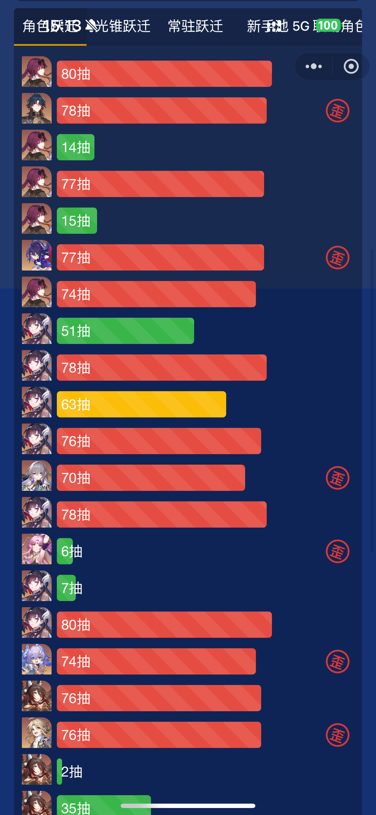 577抽6+5,2次双金,1次3金,总共就歪了一次。害怕😱