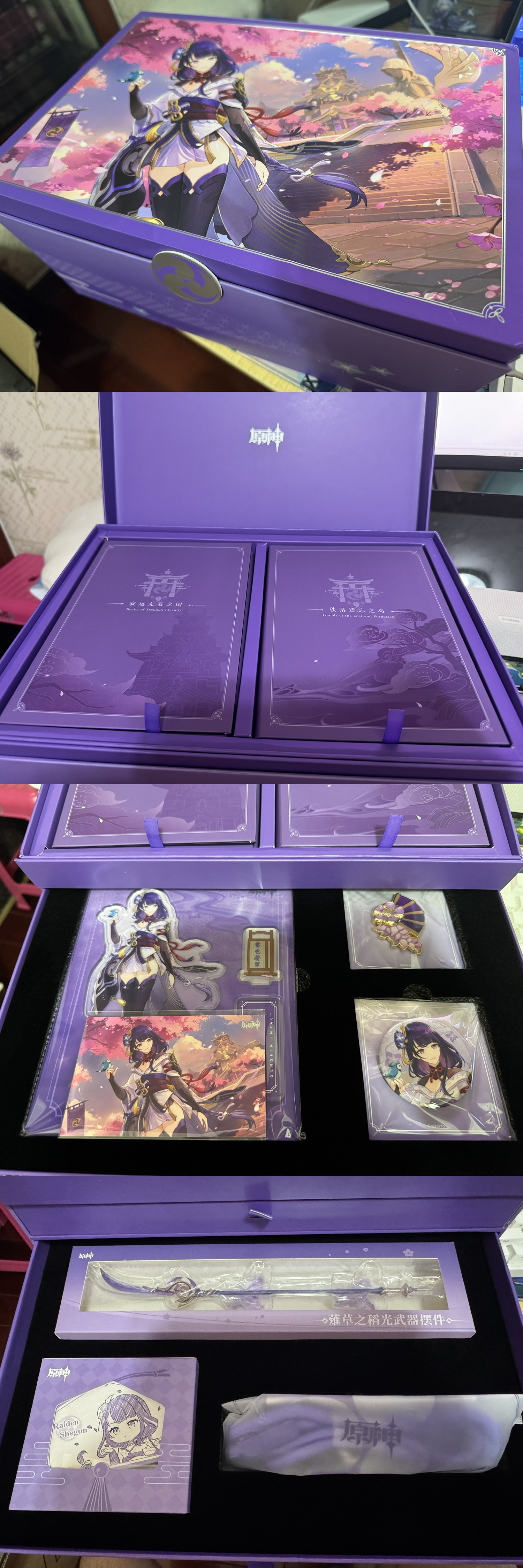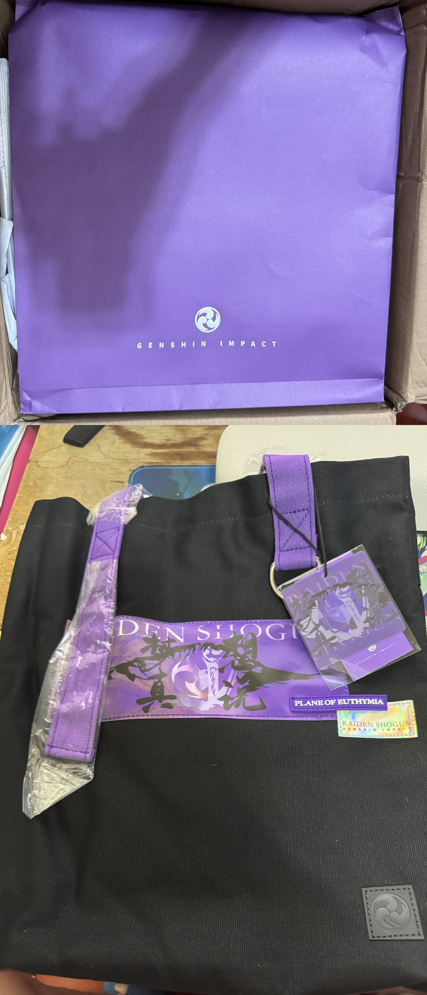 突然到了一堆东西。还多了个雷电将军印象服饰系列帆布包,搜了下没在赠品里,稻妻OST礼盒好像也没看到有这个特典,不知道是不是多塞进快递里的
