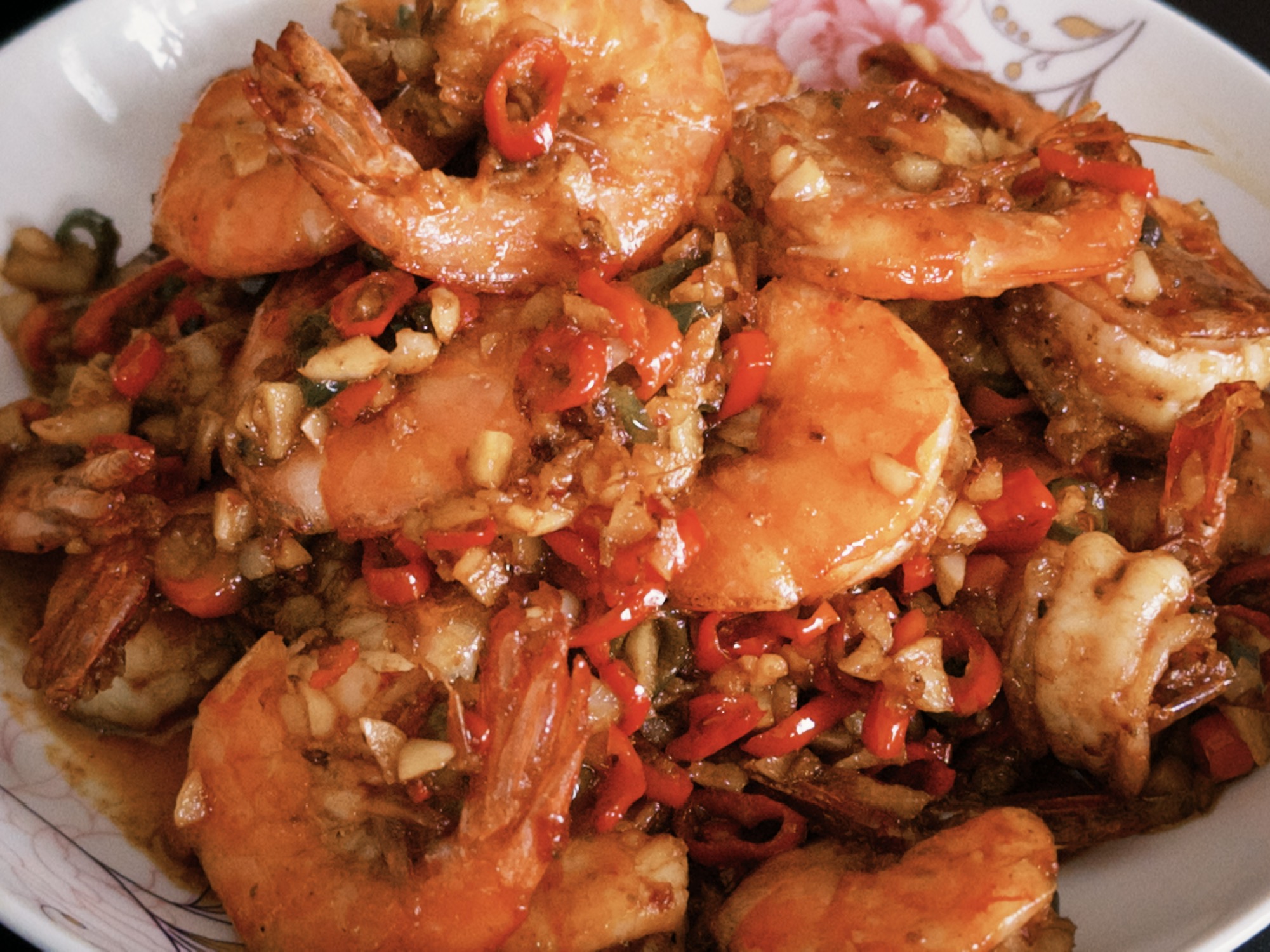 我妈不敢摸活蹦乱跳的虾,其实我也不敢,但她一定要把虾线处理了把虾开了背才愿意做,我说好吧