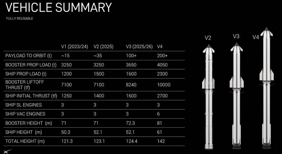 • 随着星舰4号的建造,总尺寸可能会增加约10-20%。