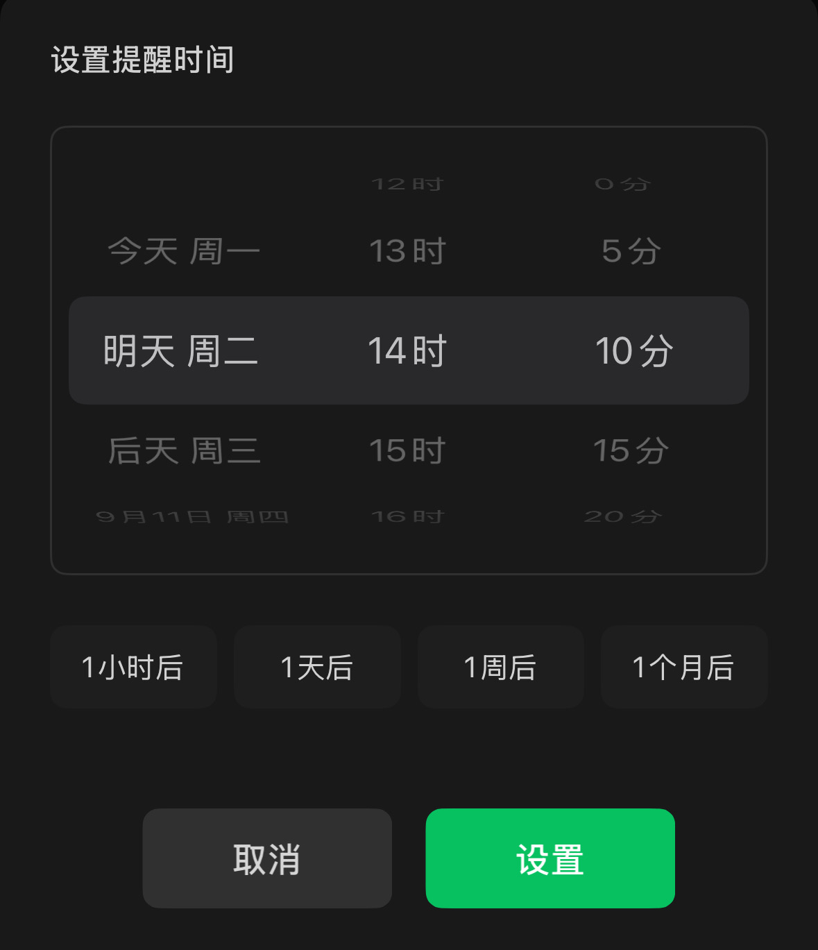 微信的“设置提醒”终于优化了,这个版本的时间选择器可以作为待办类的标杆