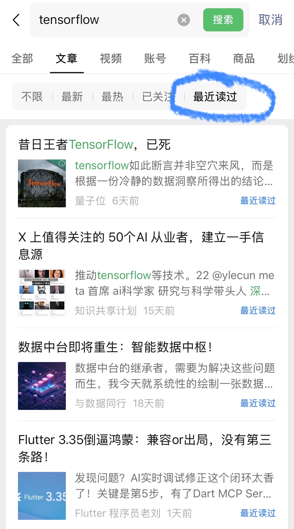 微信搜索中的“最近读过”选项非常实用,精准命中“最近好像在哪里看过”这个场景