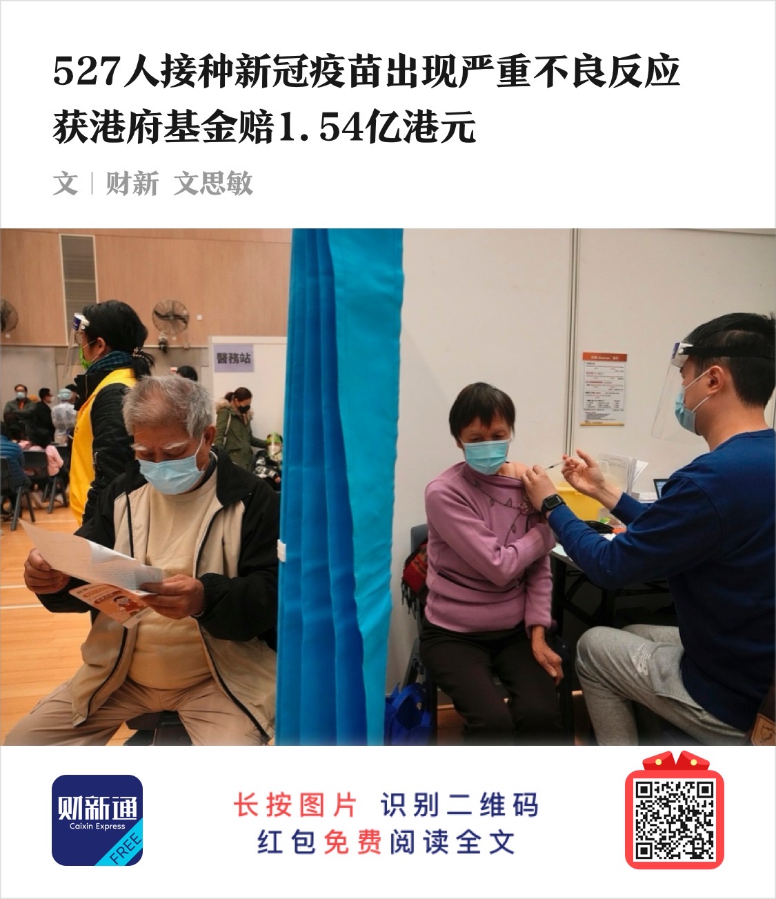 财新免费读: 527人接种新冠疫苗出现严重不良反应 获港府基金赔1.54亿港元