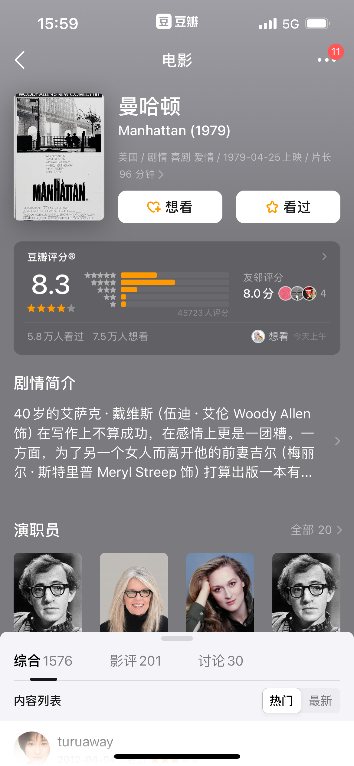 小西天资料馆看电影,伍迪艾伦1979年导演的电影《曼哈顿》