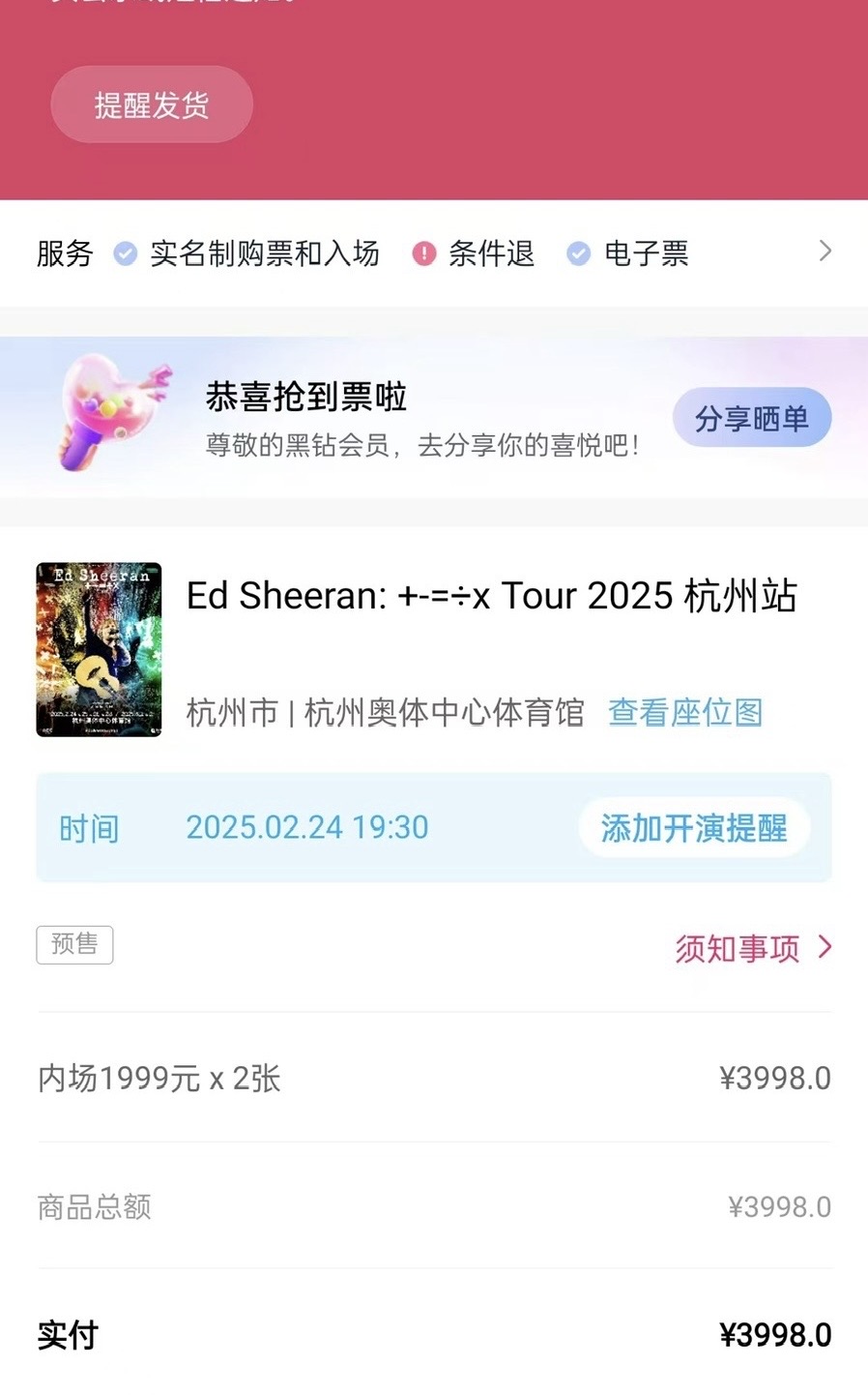 呜呜呜,今天三开抢到我黄老板的票咯