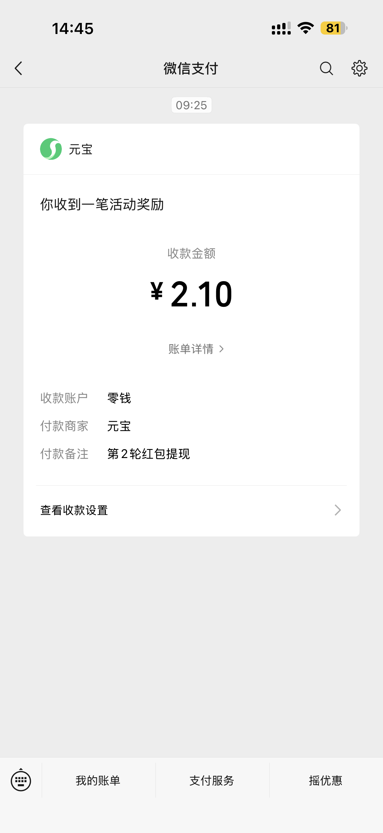 发财了,早上居然看到元宝给我发红包了!