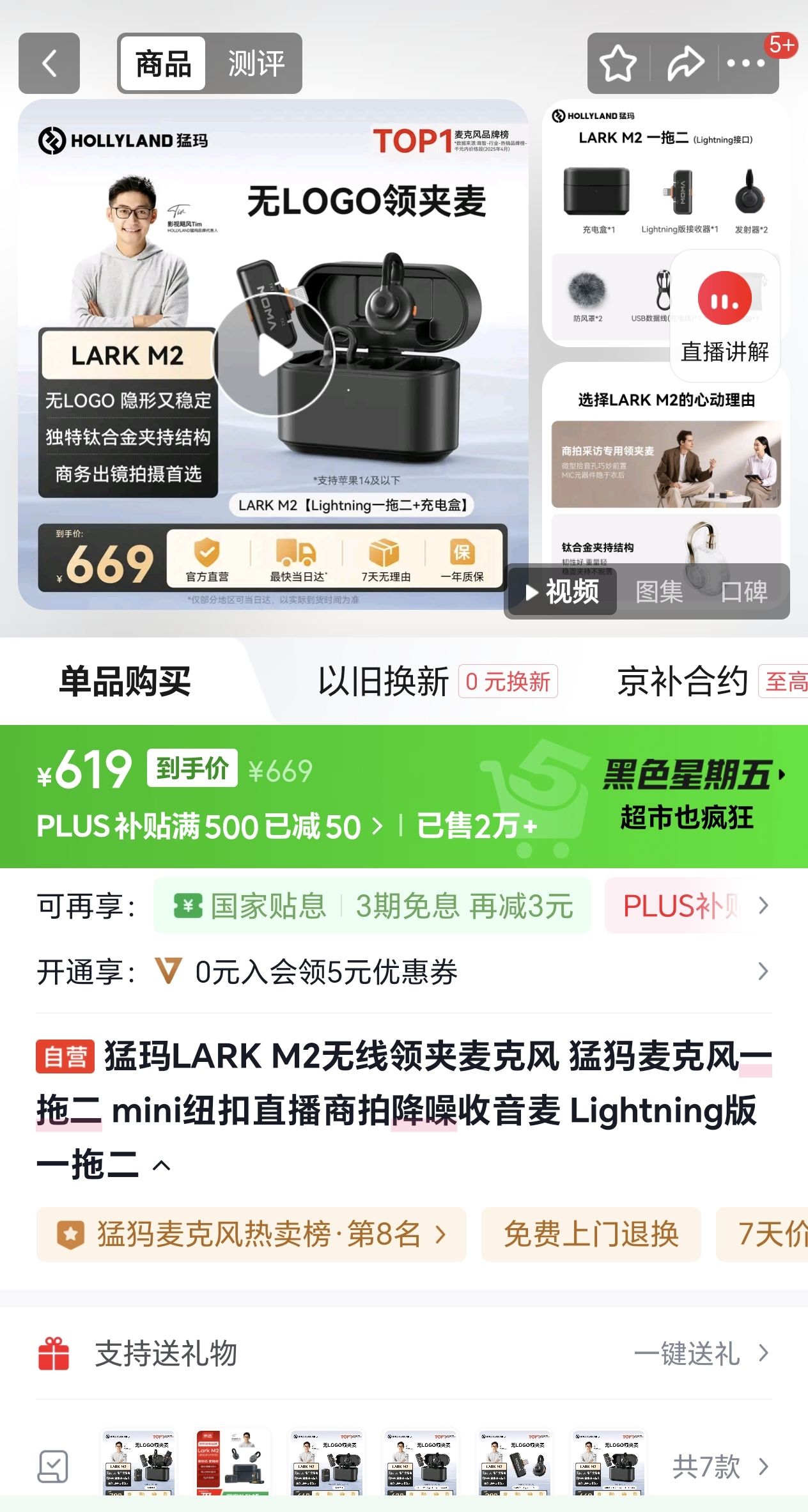 猛玛LARK M2无线领夹麦克风 猛犸麦克风一拖二 mini纽扣直播商拍降噪收音麦 Lightning接口带充电仓,一拖二