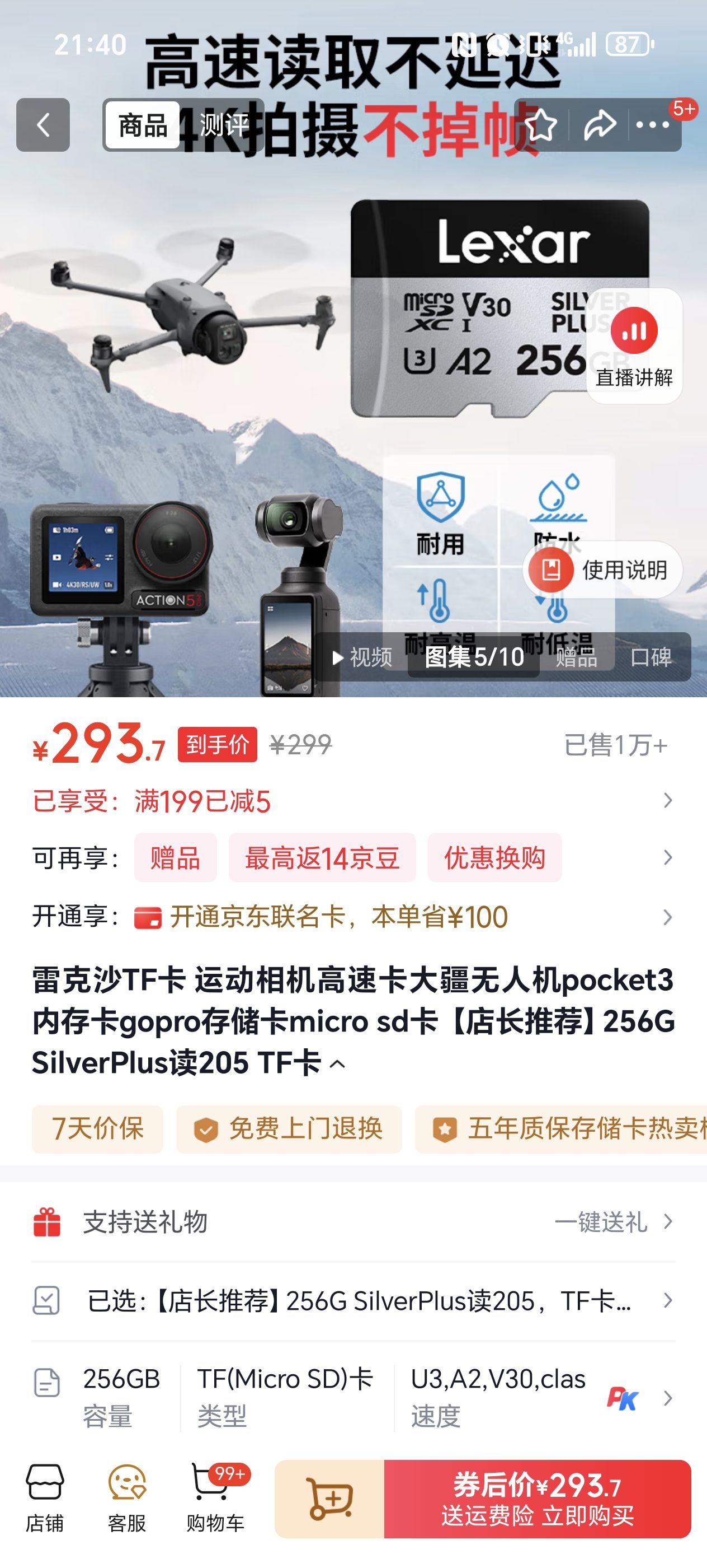 雷克沙TF卡 运动相机高速卡大疆无人机pocket3内存卡gopro存储卡micro sd卡