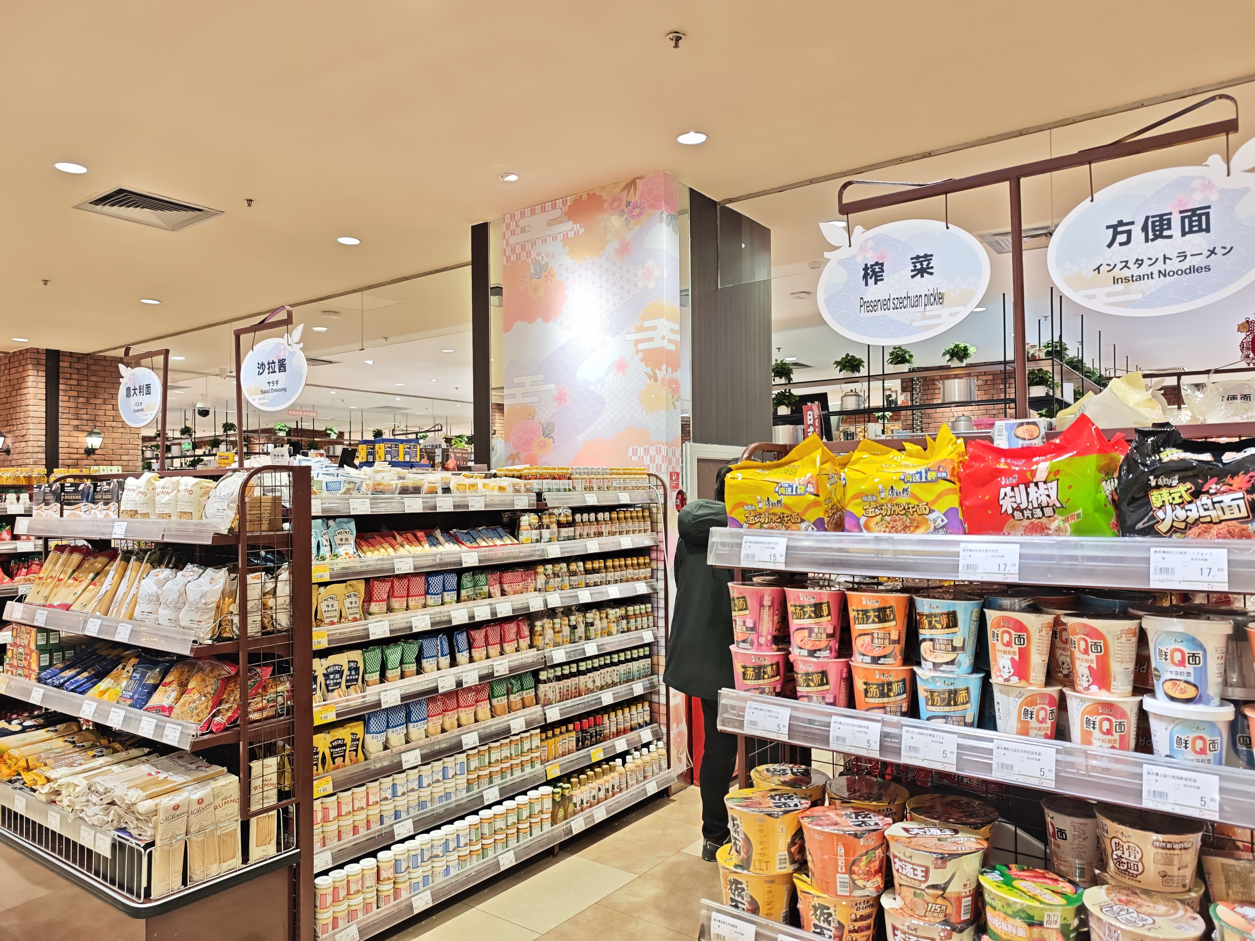 品类动线近似国内的盒马NB(近期更名为超盒算NB,盒马旗下社区超市),单品空间更集约。