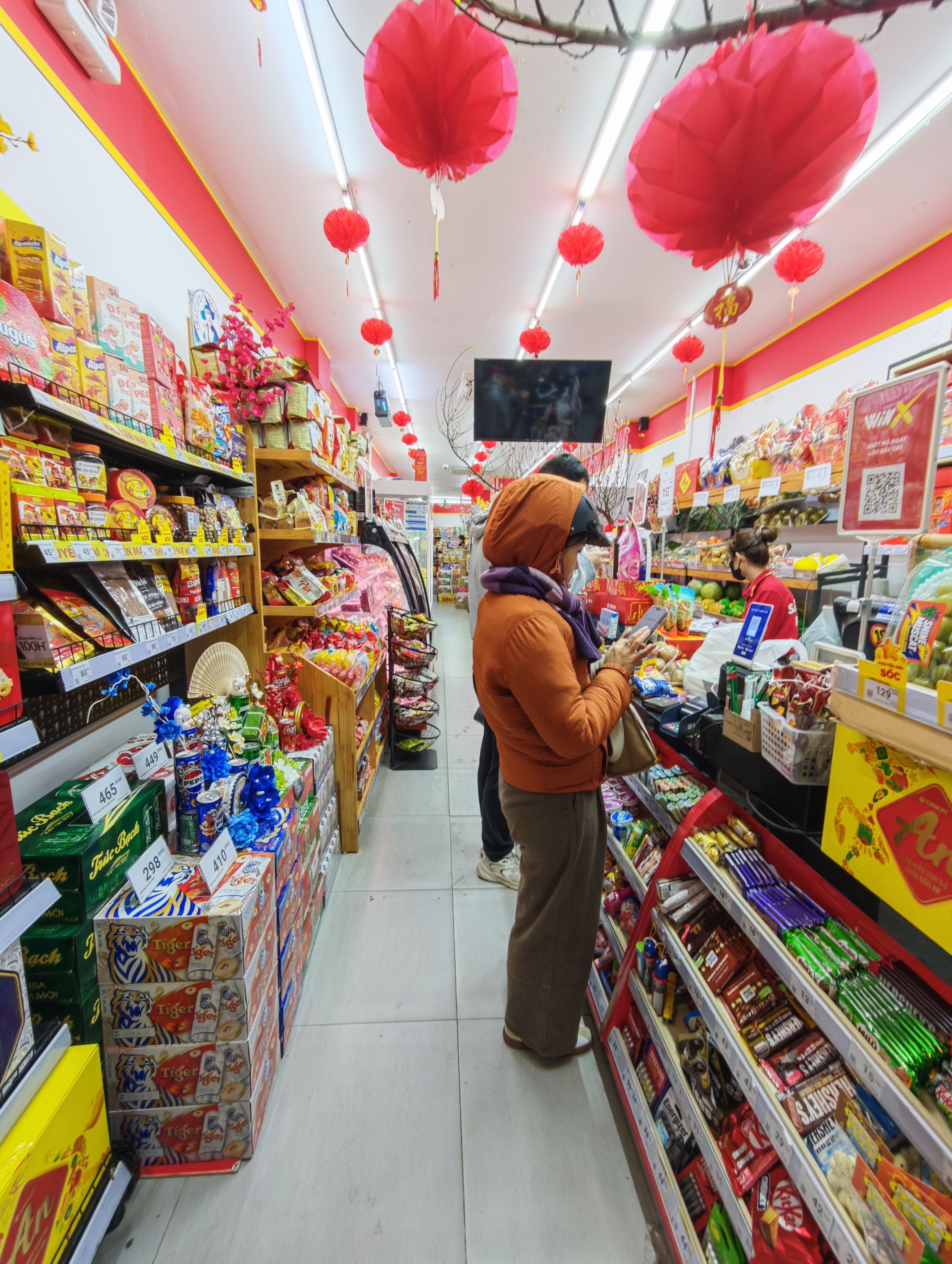 以河内老城区的Winmart+(前场~40㎡),周五6pm在店客流15人,店员2人(含收银)