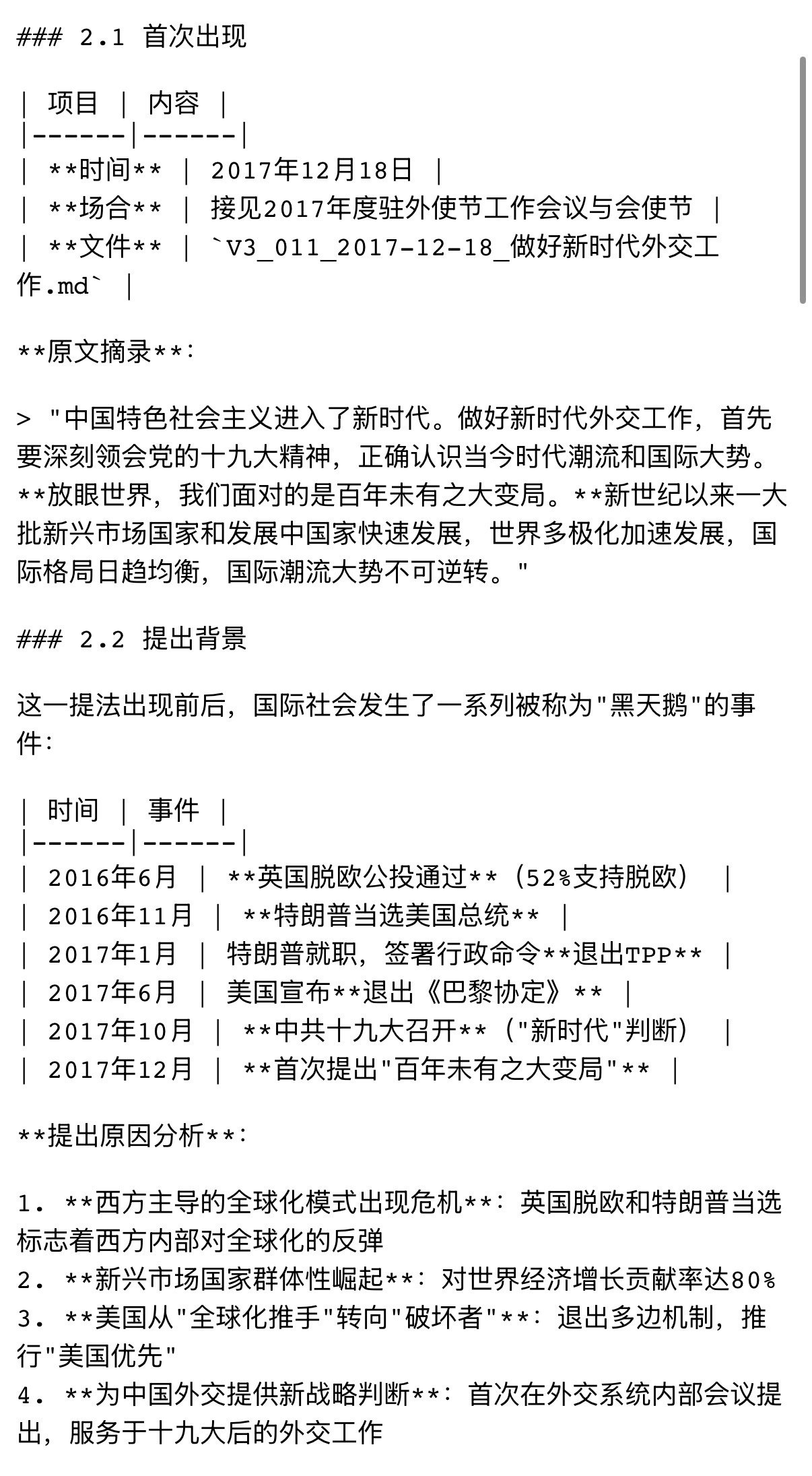 比如「百年未有之大变局」就是一个领先世界版本十年的判断。
