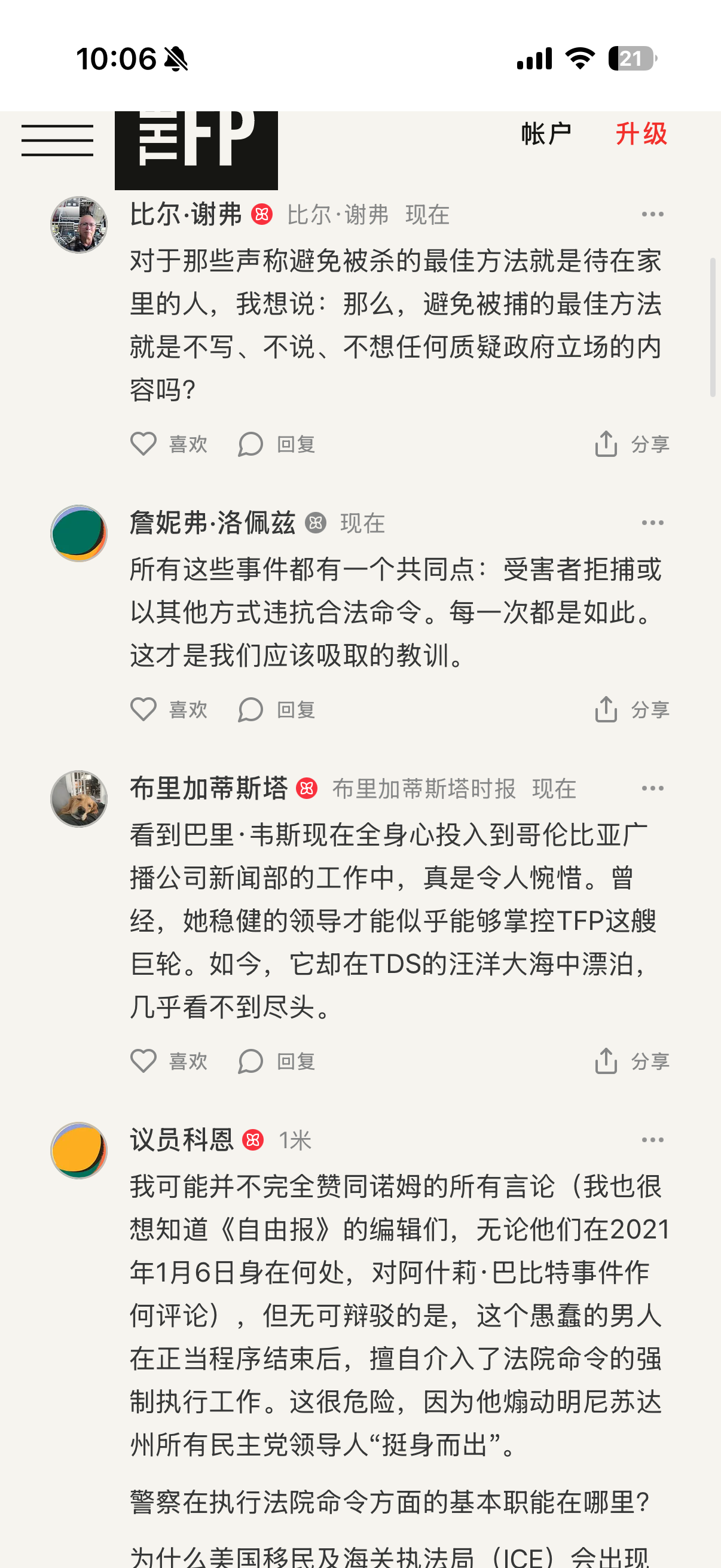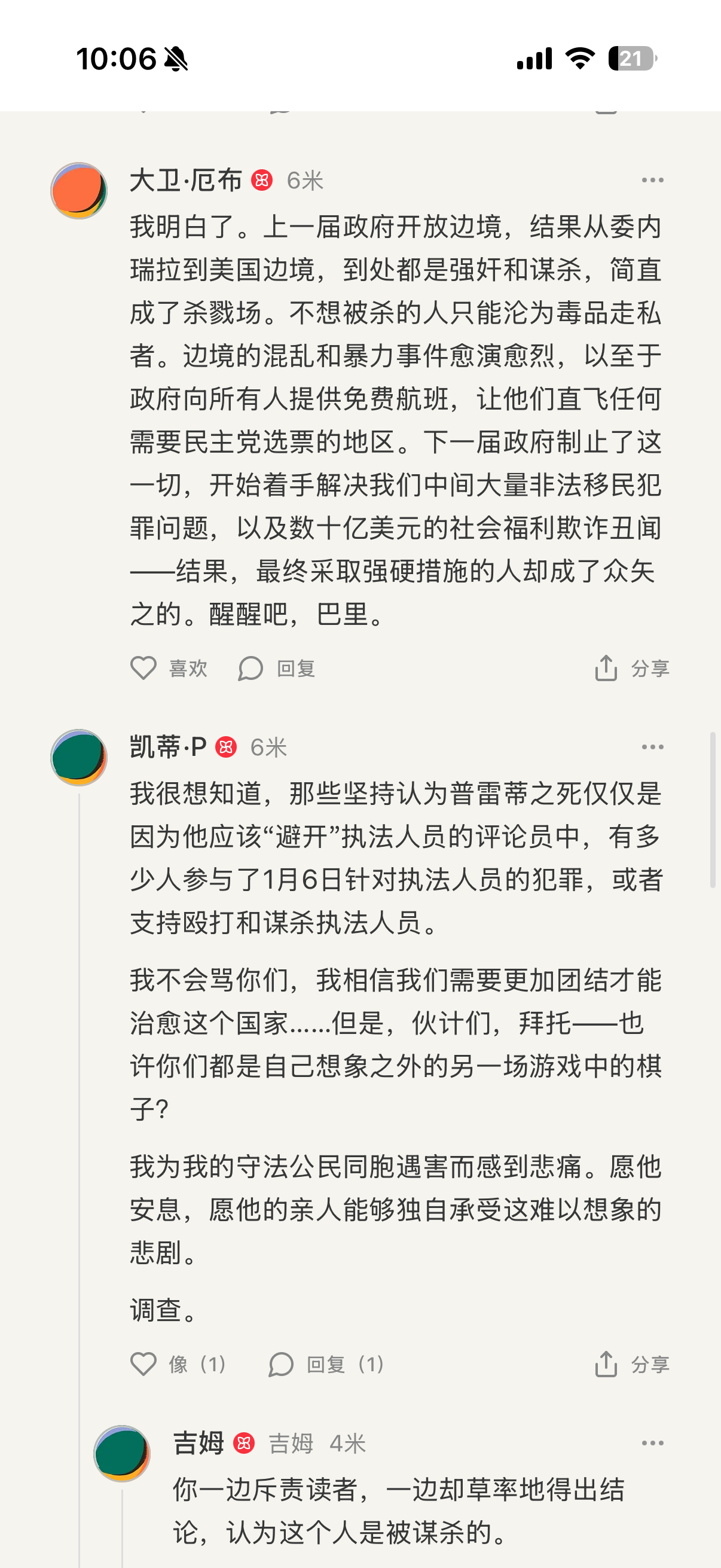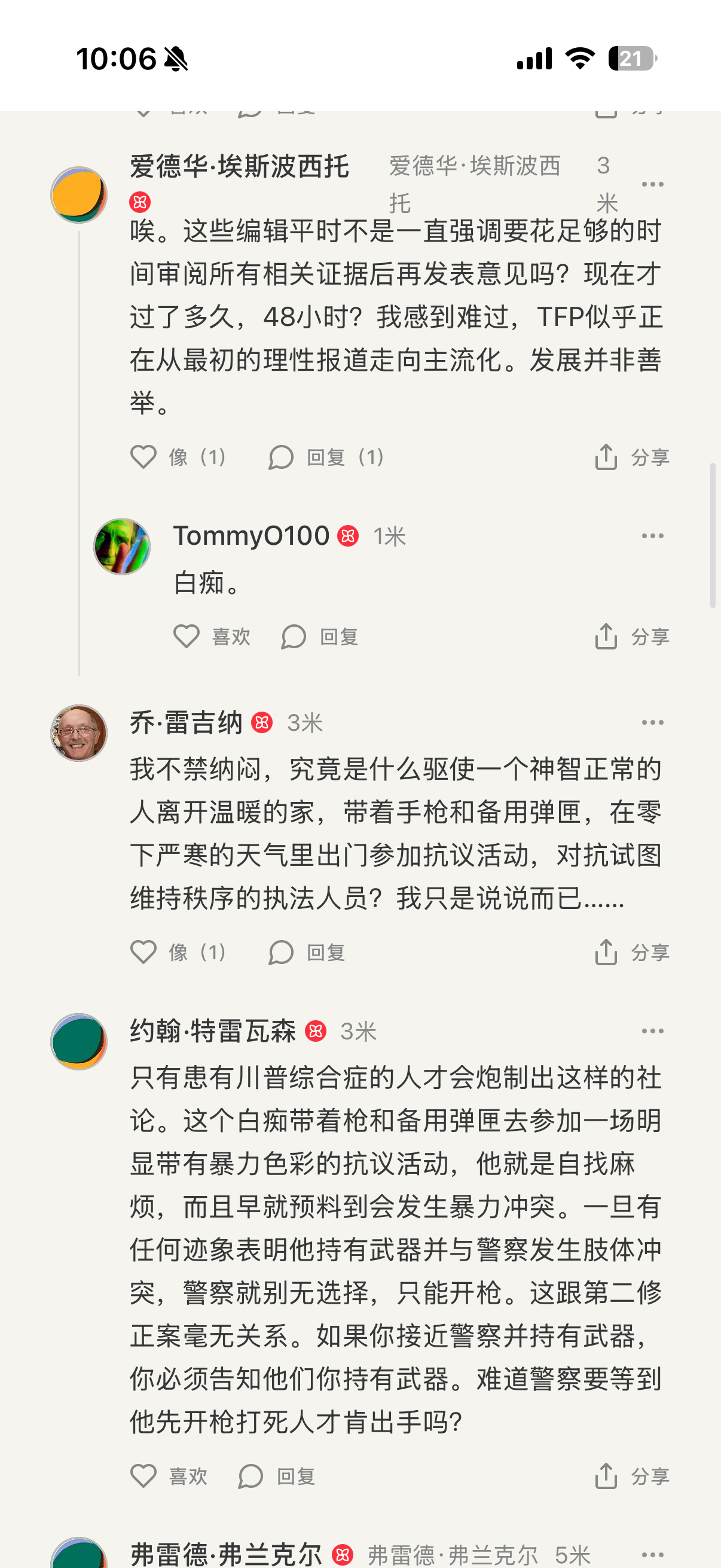 而这些评论还来自The Free Press一家需要充年费阅读的独立媒体评论区。几乎清一色支持川子,认为被枪毙的护士肯定有阴谋😭