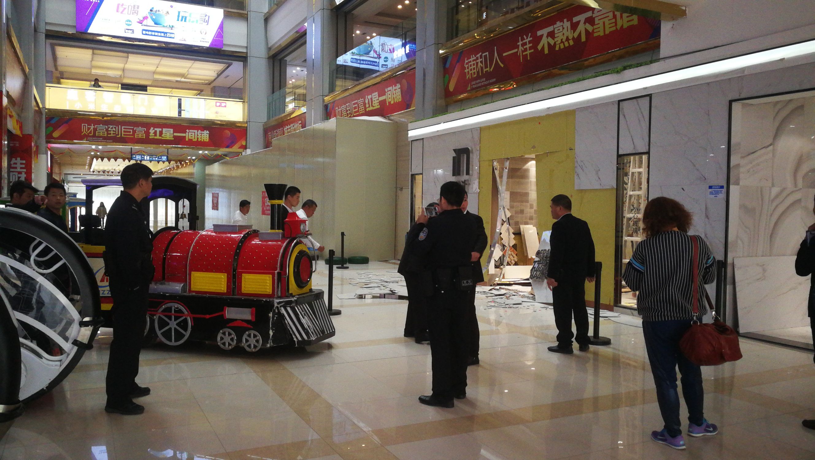 一个小孩抢了小火车在商场逮虾户,转了两圈才撞墙。。