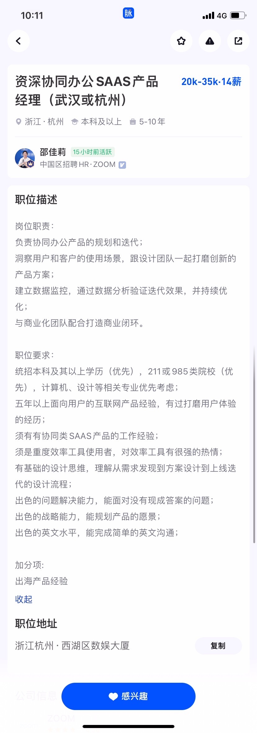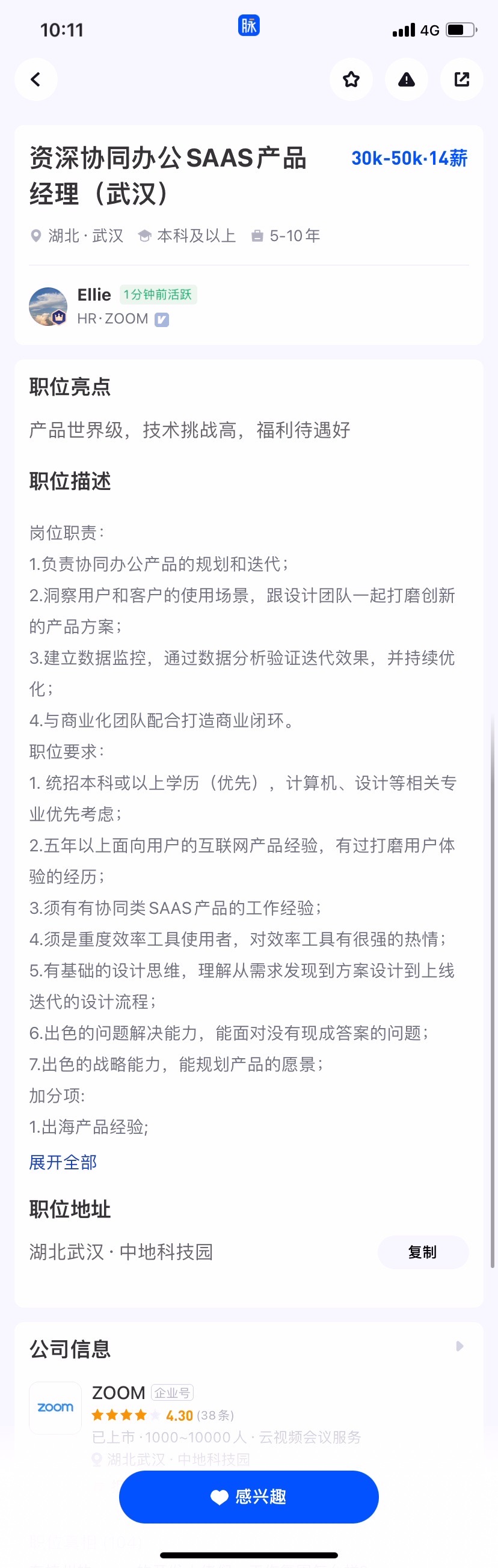 Zoom国内招聘资深协同办公pm,base 武汉或杭州,如果有大佬有意向,请联系我内推!!!直通面试~~~~~