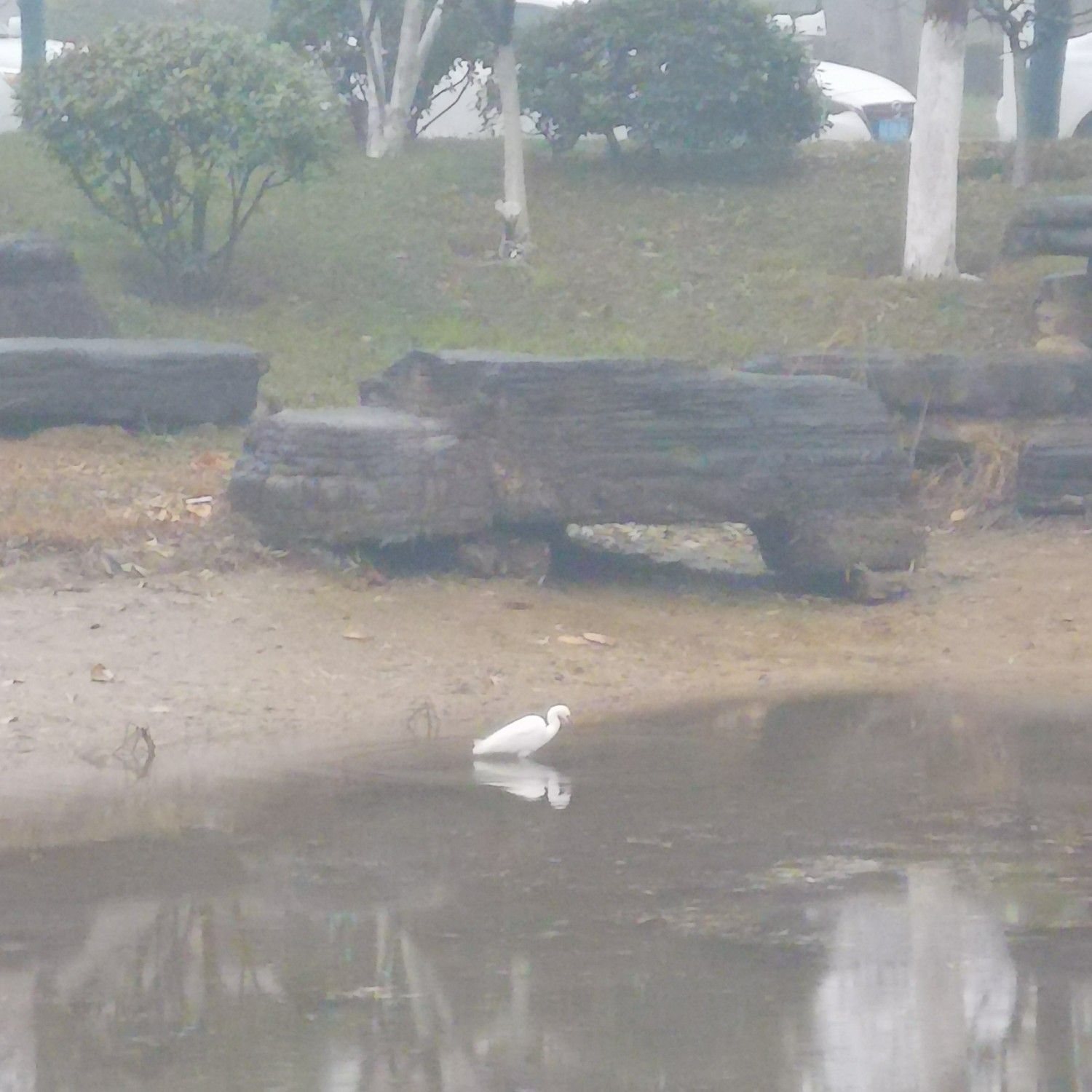 (附一只愁雾冷雨中觅食的小白鸟)