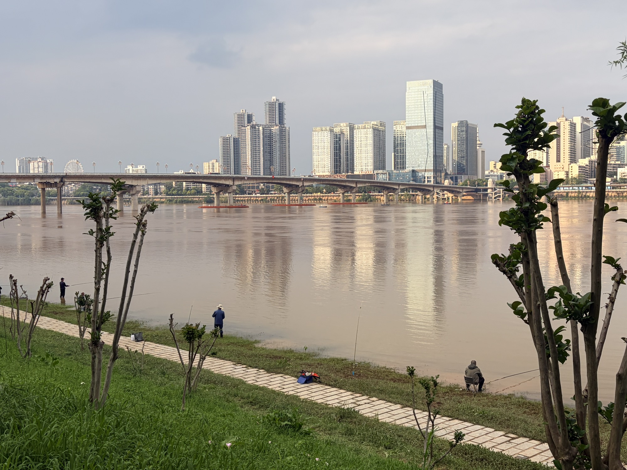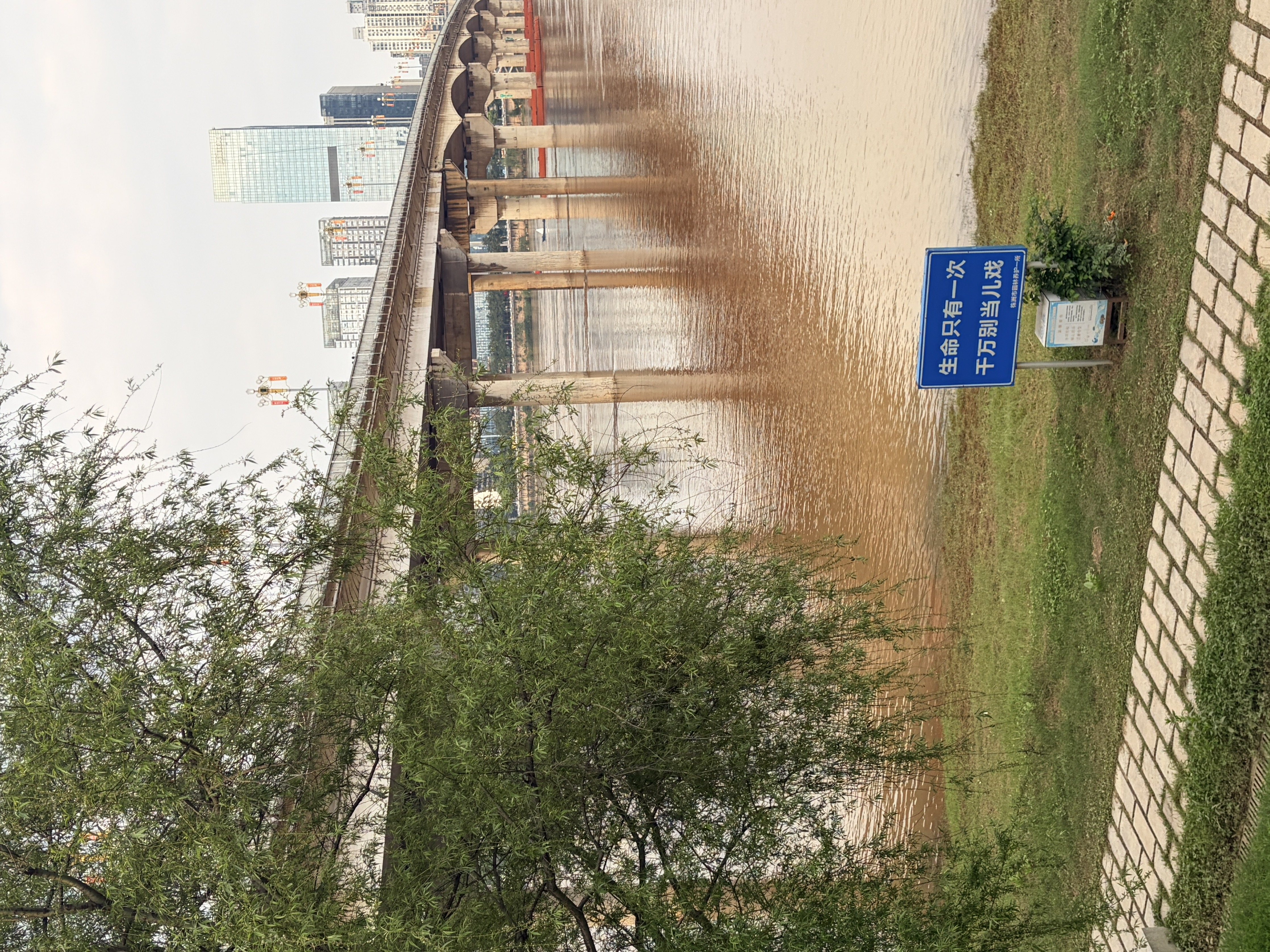 江边散步,水黄了。