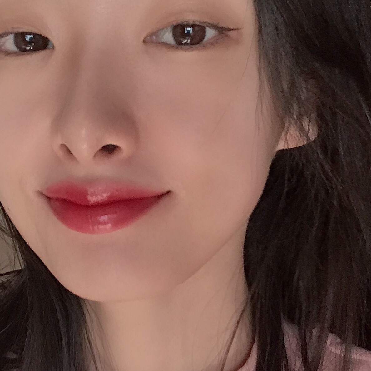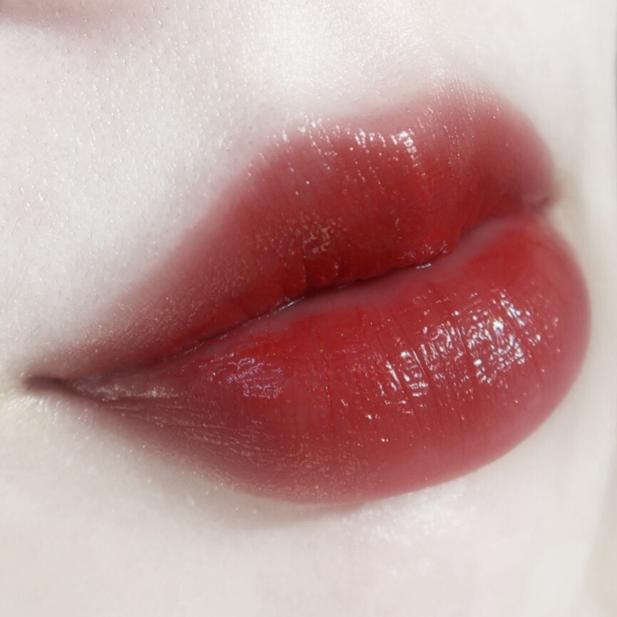 光看膏体是很暗的红棕色,上嘴之后是草莓水红色,粉红调多一些,但饱和度不高,比图片上看着还要低调点。膏体里面有银闪,我日常不是很喜欢涂有闪片的口红,逛街约会的时候涂的更多些~
