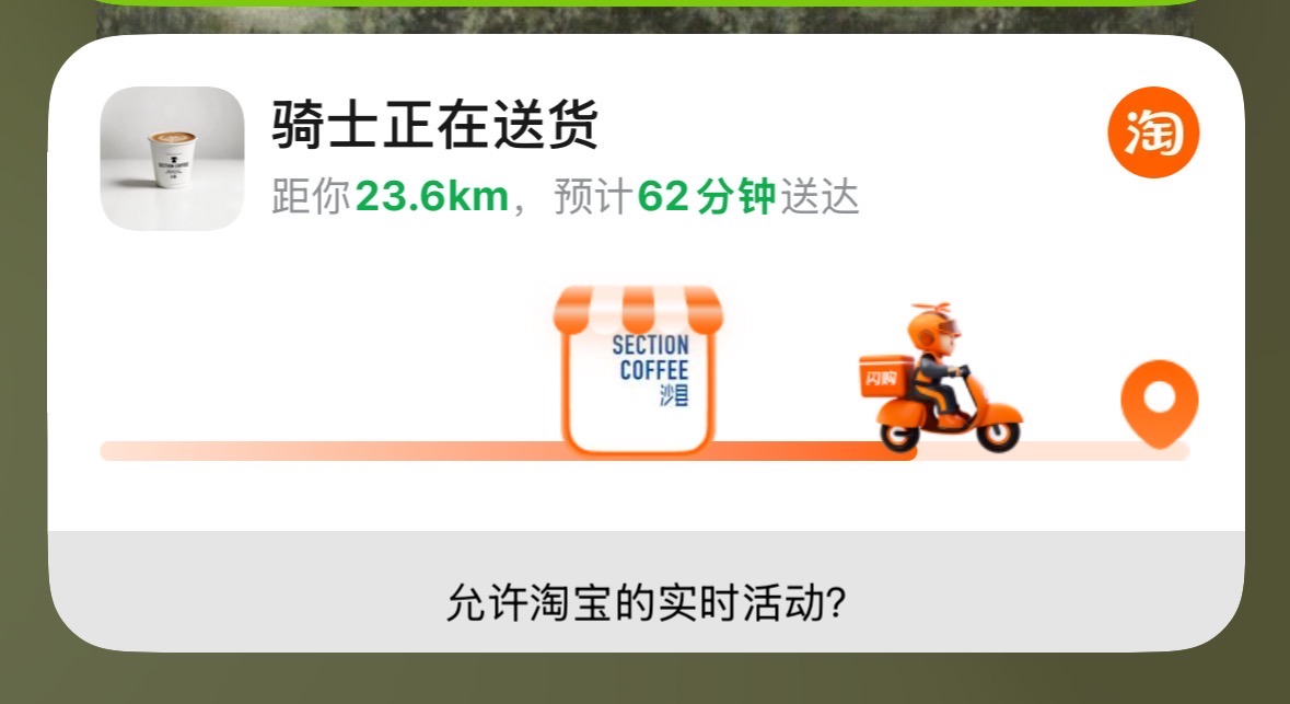 没记错的话我是20分钟之前点了一个离我步行距离800m的店吧!☕️