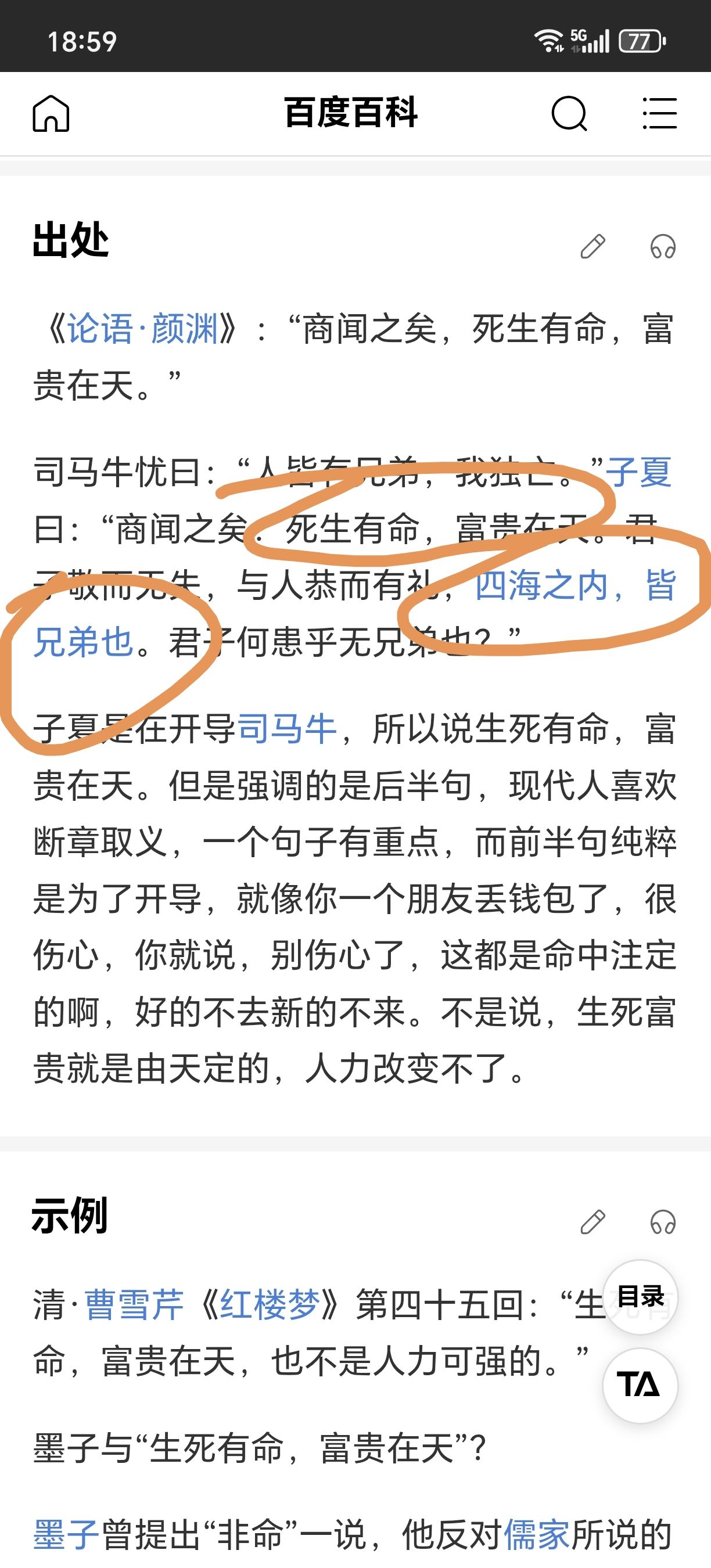 生死有命,富贵在天。四海之内皆兄弟。