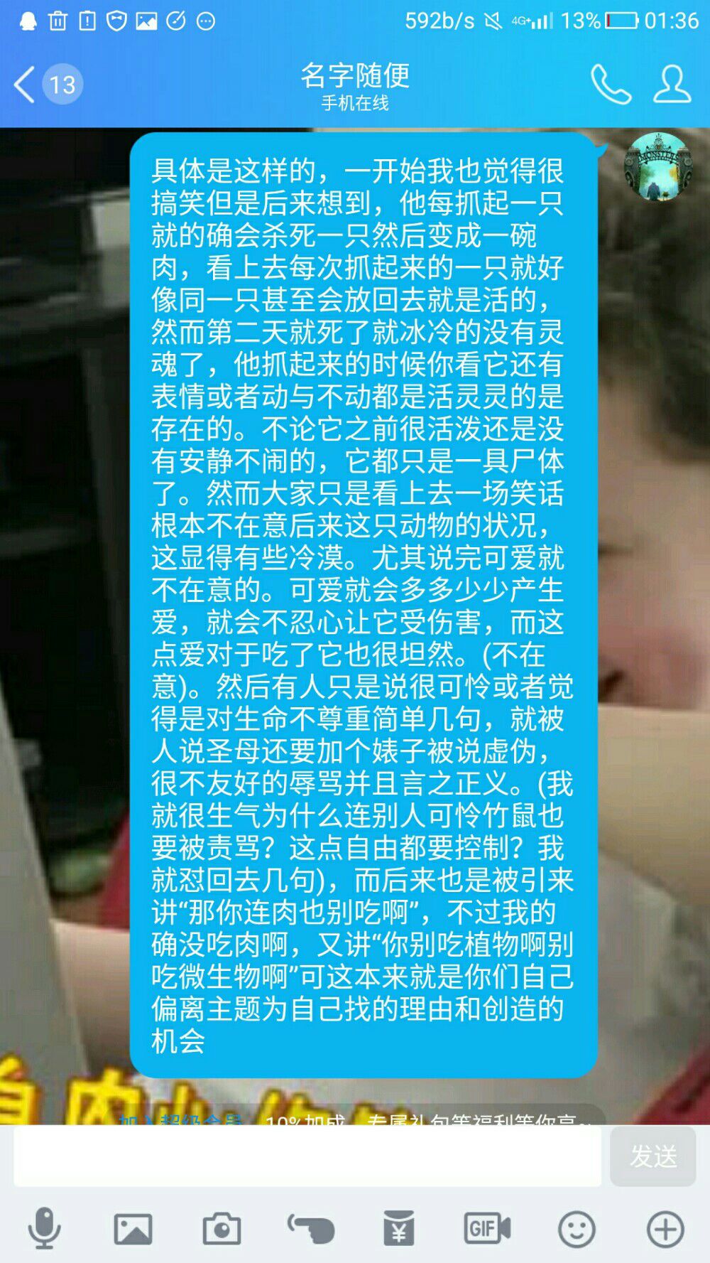 二,植物。以实际上的科学来讲还没有肯定植物是有精神的(你主观的认为有精神会痛,并以一个吃肉者命令你不要吃植物了,这纯是一种嘲笑逼人和看戏出事的心理)在这点上也有着论点错误。再者既然你讲“你这么仁慈你别吃植物你善良就别吃植物”那么你应当先直白承认你不善良,而我讨论是意义在于善良,既然你没有善良那么我们就可以不在做交流。