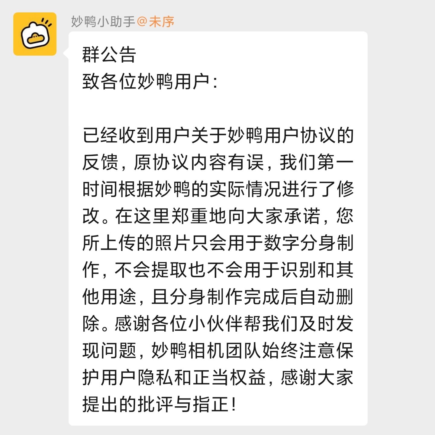 妙鸭更新了用户服务协议。新的协议关于用户数据的部分如下,完整发服务协议可以点击
