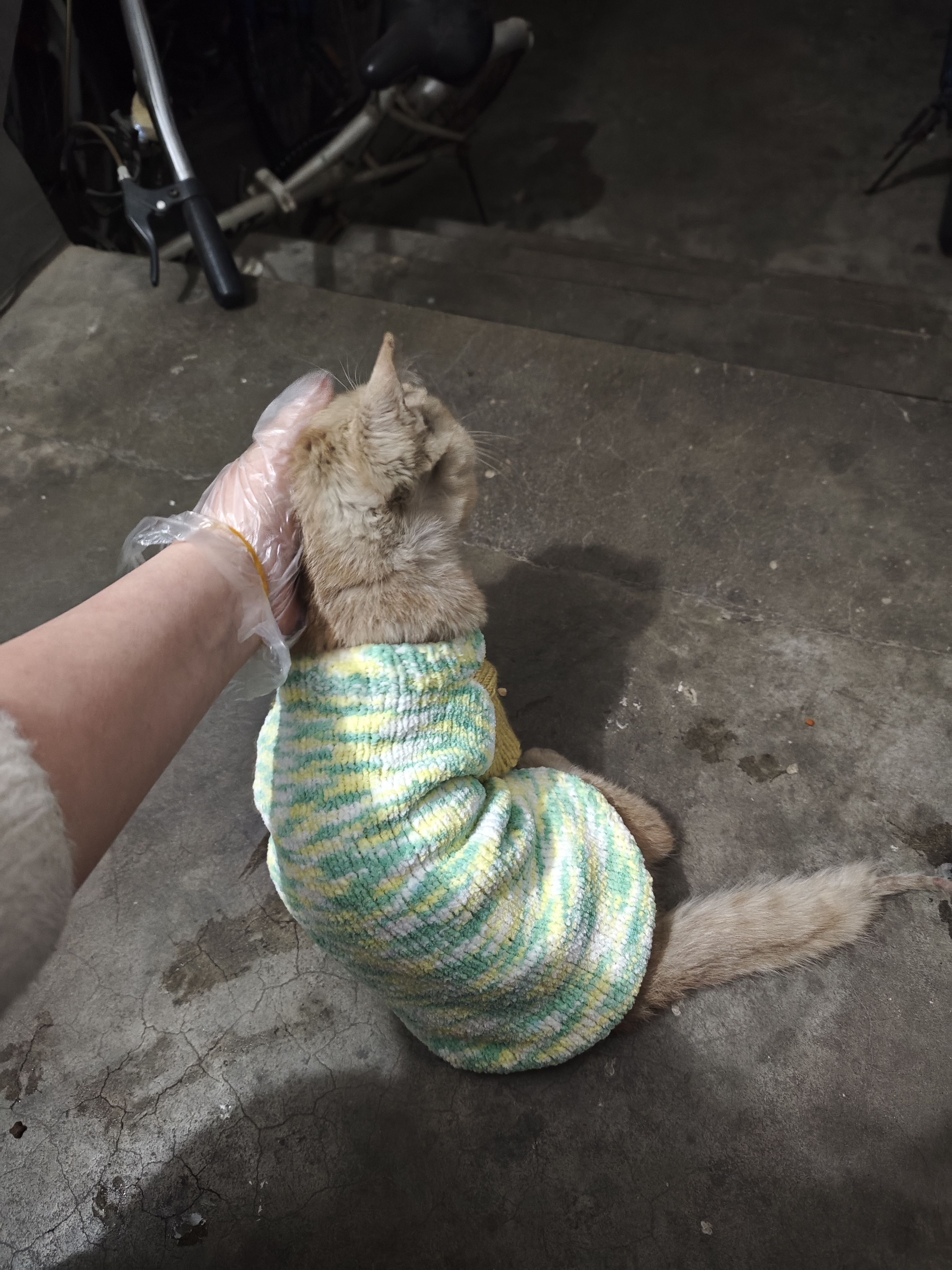 今天在外面找了好久才找到流浪小咪,把我家附近四五栋楼附近找遍了都没找到,最后准备放弃的时候,终于在一个我没停过车的电动车棚找到了他。真的很有缘。