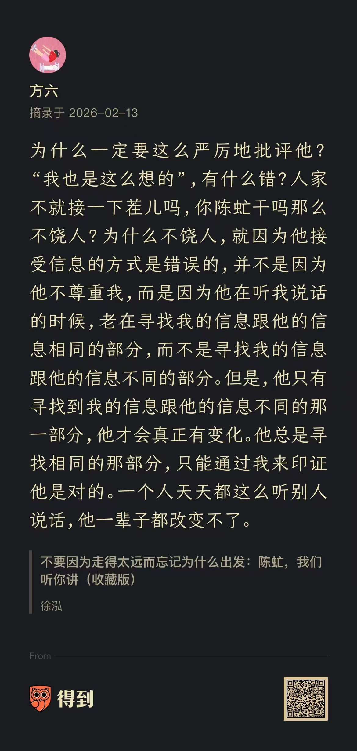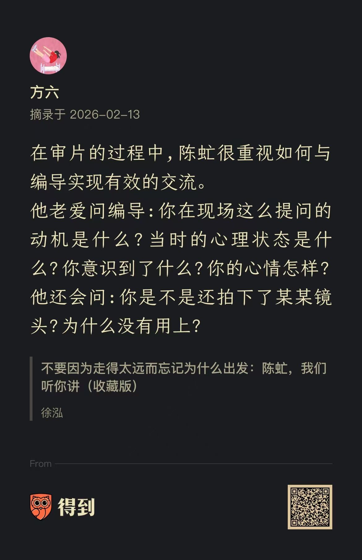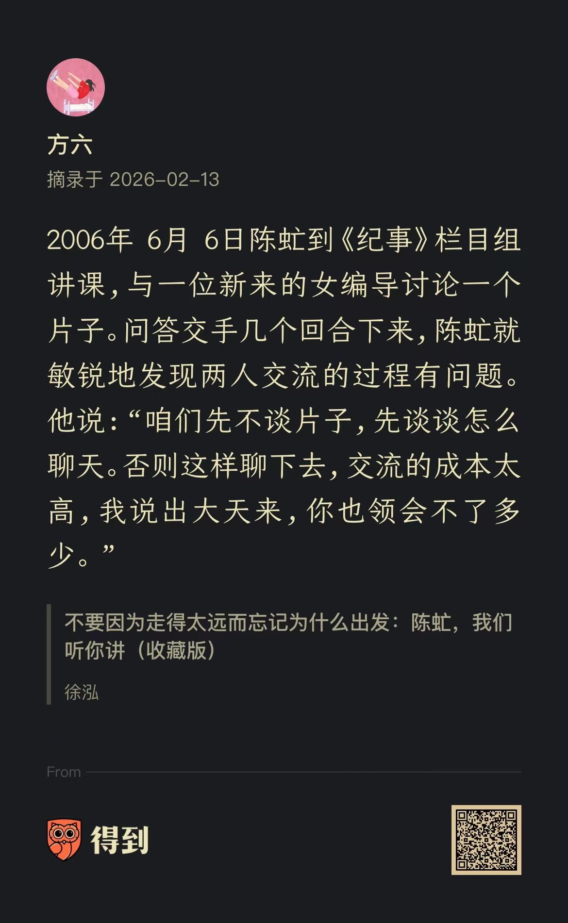最近看这本纪念陈虻的书,看他怎么做内容,怎么做管理。发现在这两个事上,陈虻都格外关注人的思维方式,而且会很直接介入这个层面。