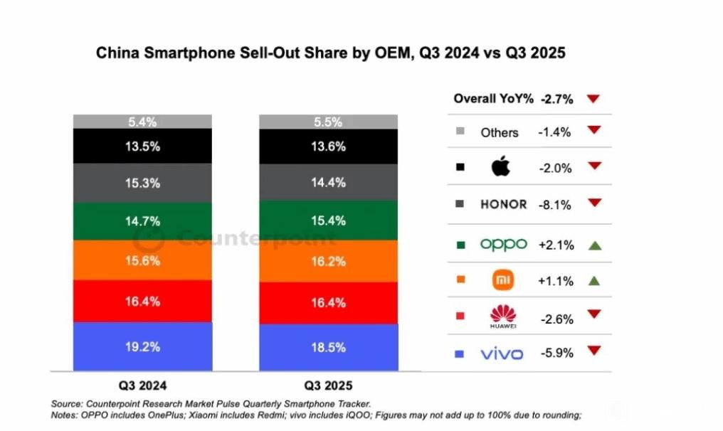 国内手机市场份额真叫一个均匀,应该是世界上竞争最激烈最残酷的一个市场
