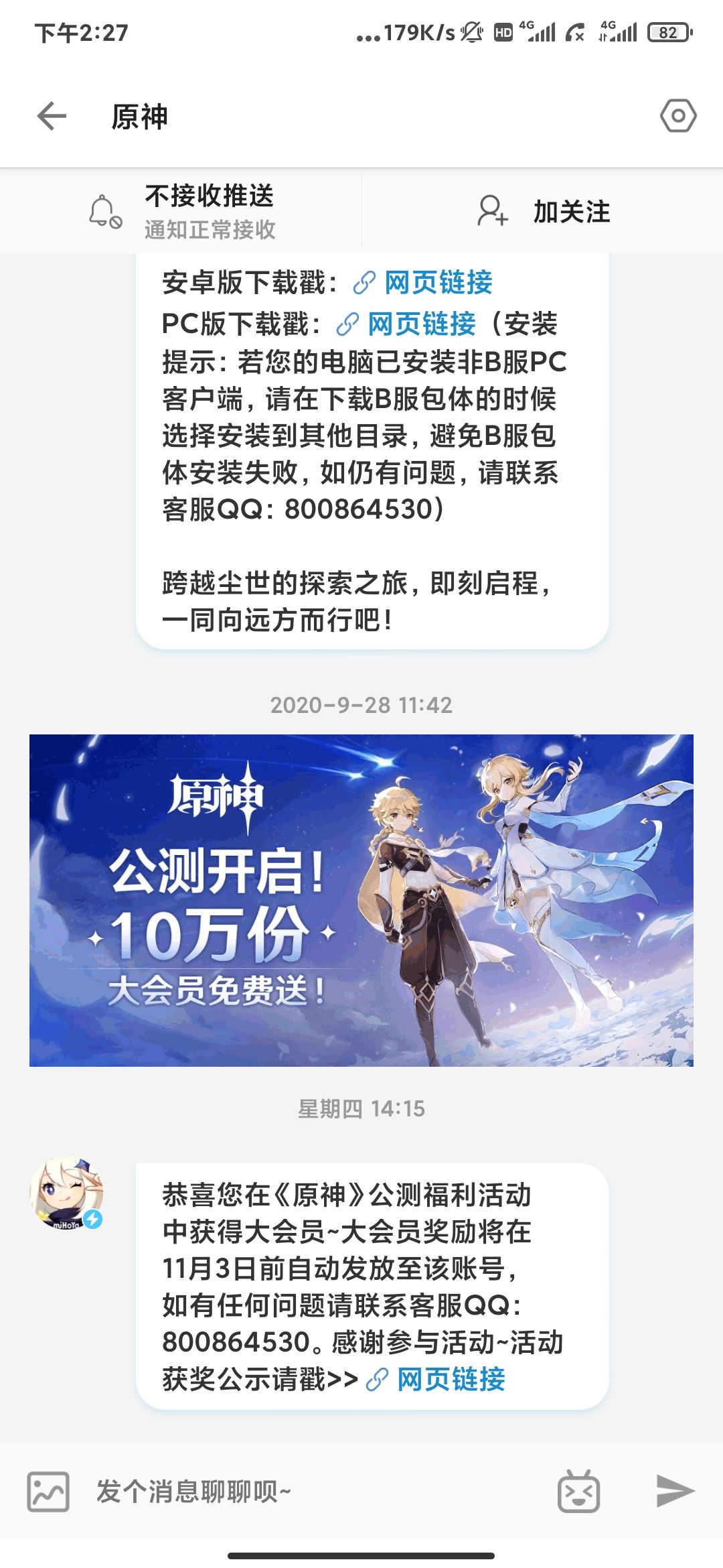 离谱,昨天刚骂完原神,今天看见b站私信送我大会员了🐶
