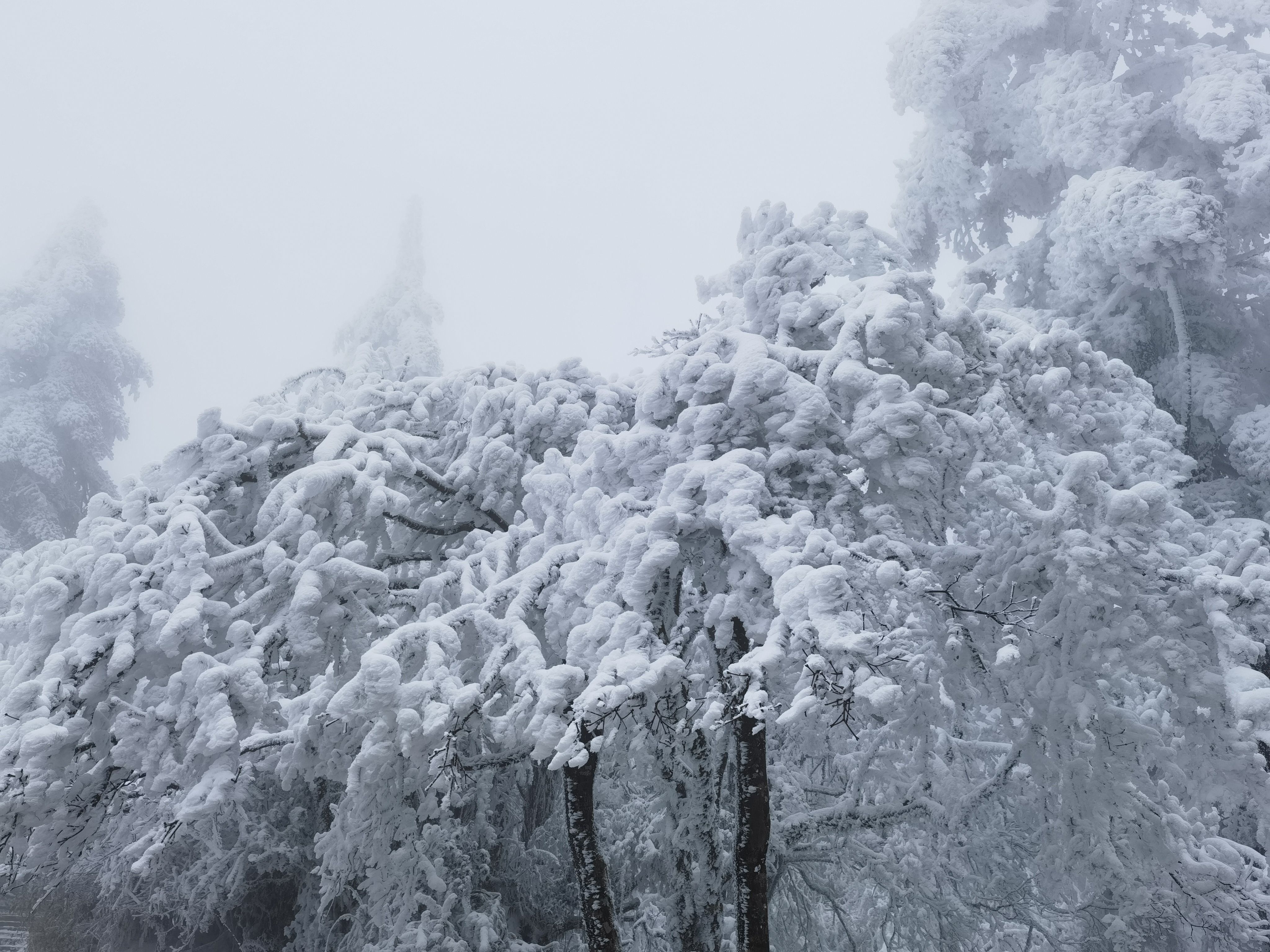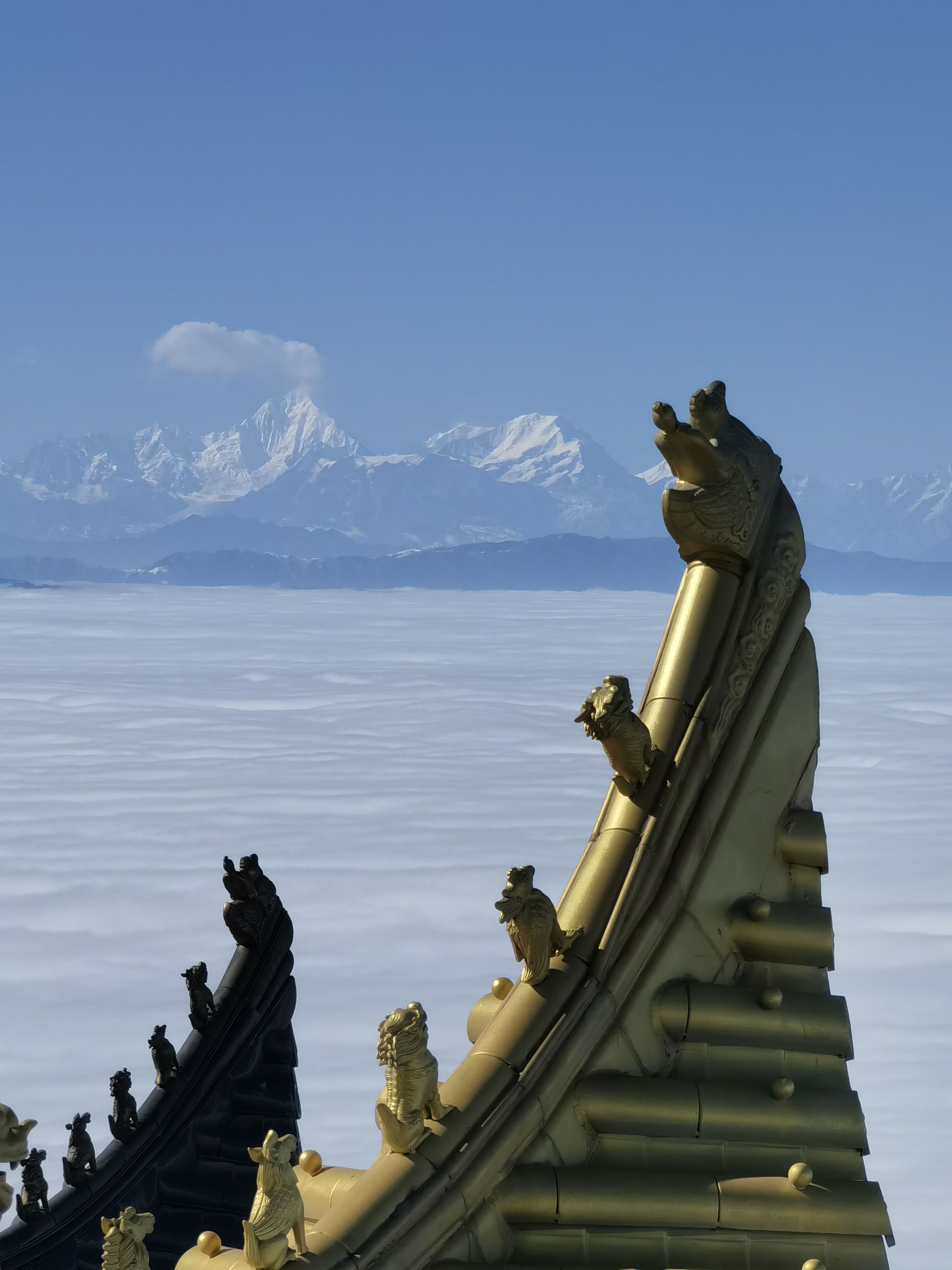 峨眉山之行,海拔落差大,山下下着小雨,到了雷洞坪后下着大雪,即使是生活在四季分明的地方,雪松的景色也是第一次看到。坐缆车穿过云层时,拨云见日。在金顶可见远处的贡嘎雪山和瓦屋山。