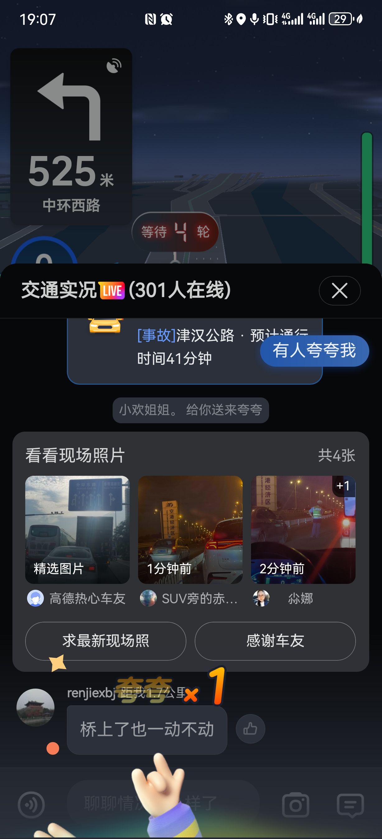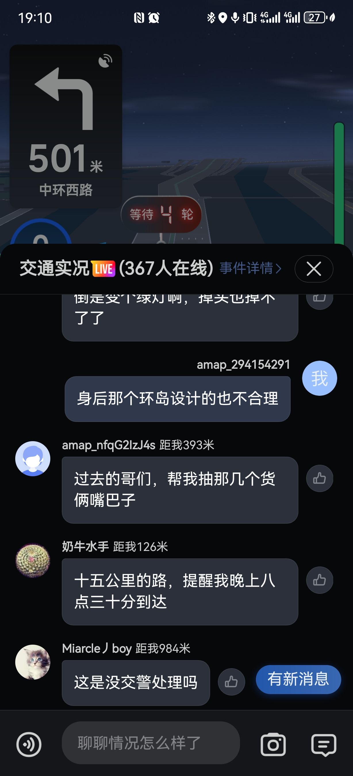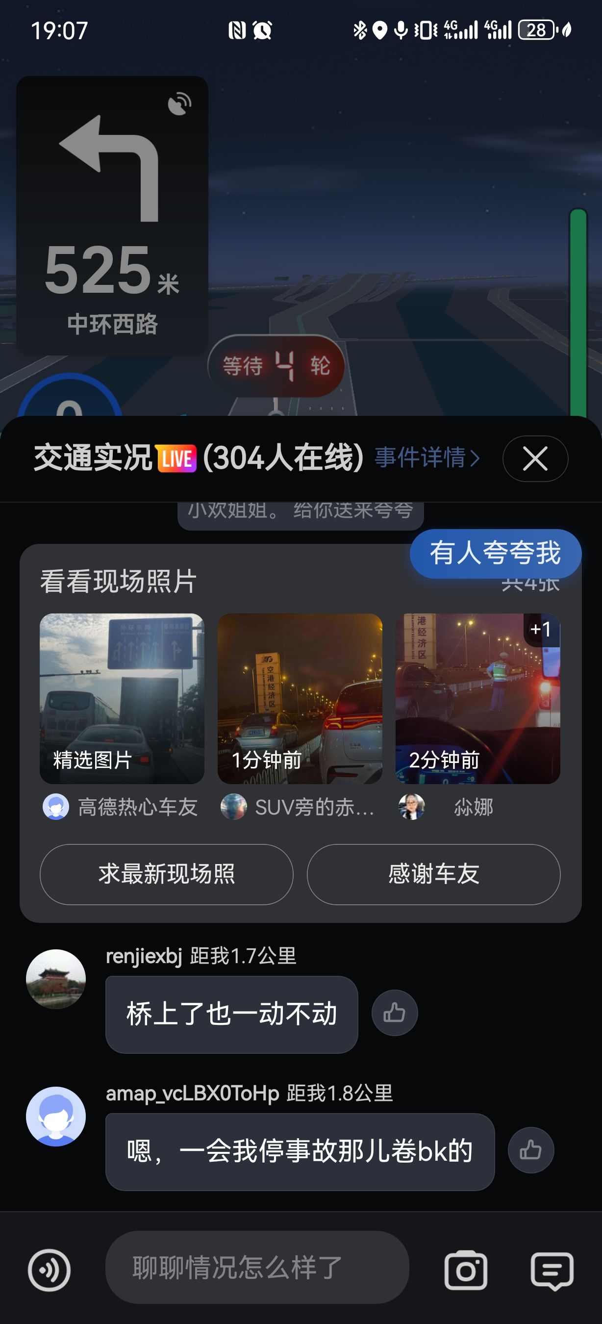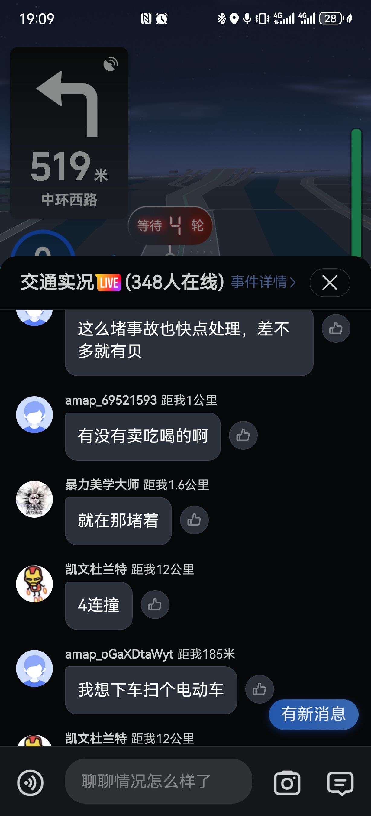 高德的堵车期间生成交流群,实时分享信息,很有意思啊。特别是一个大哥说,谁快开到前面了,帮我给那俩撞车的人一个嘴巴子😂😂😂