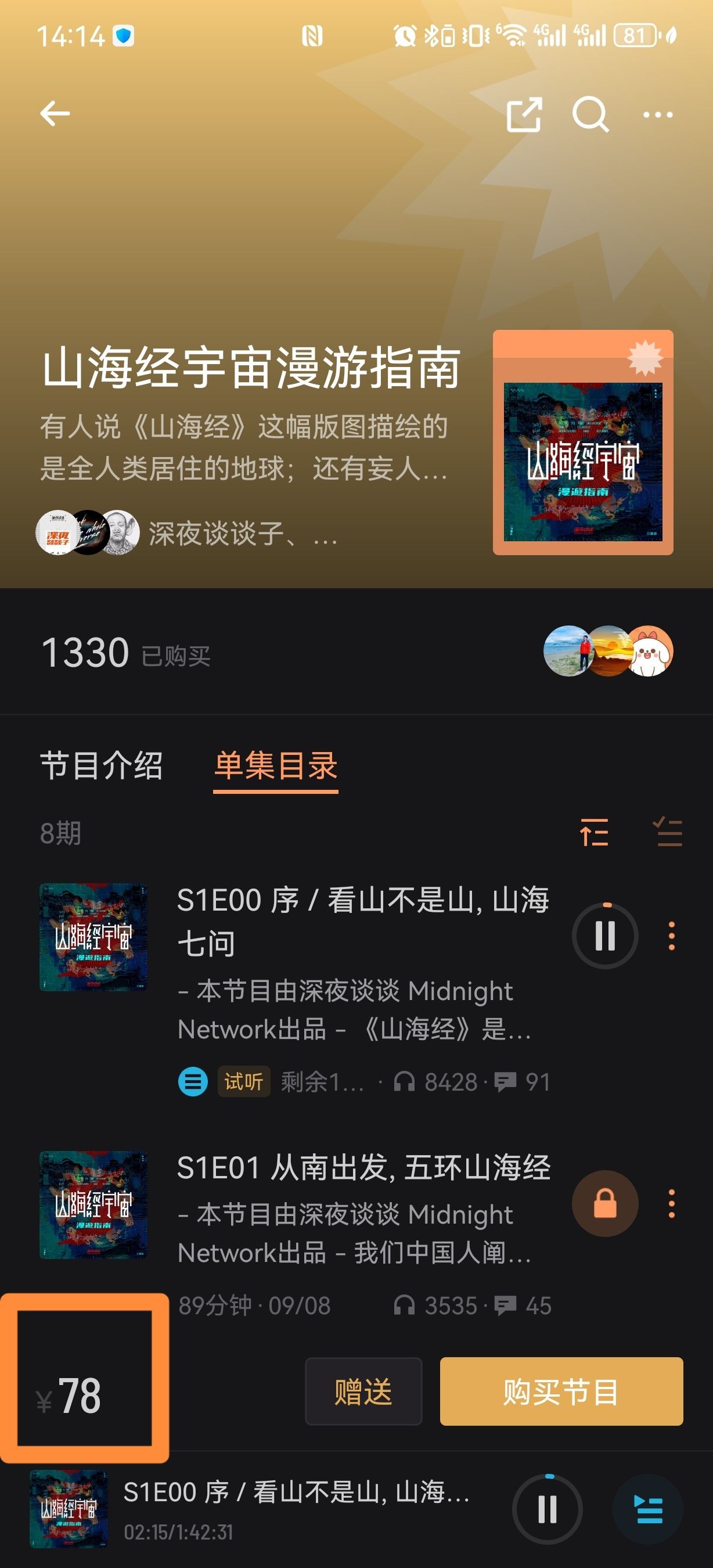 有人买过这个播客嘛,这个定价和更新频次。。。 值么😂😂😂
