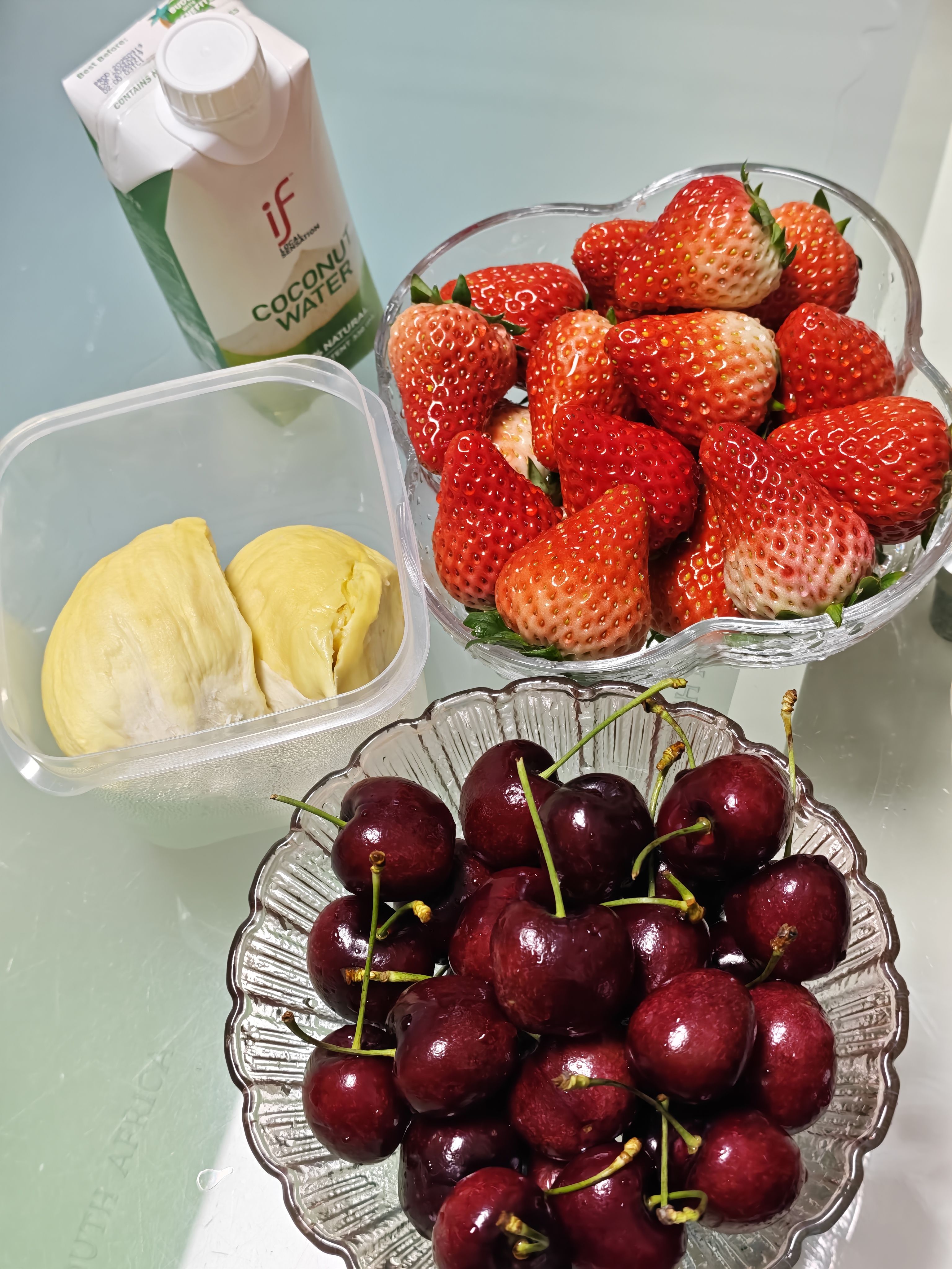 买了一箱4J 的车厘子 好吃的很呐(´ڡ`)/🍒甜甜脆脆的根本停不下来🍒(*^_^*)草莓也买的大大粒!酸甜可口!冰冰凉凉的口感非常好(๑´ڡ`๑)🍓