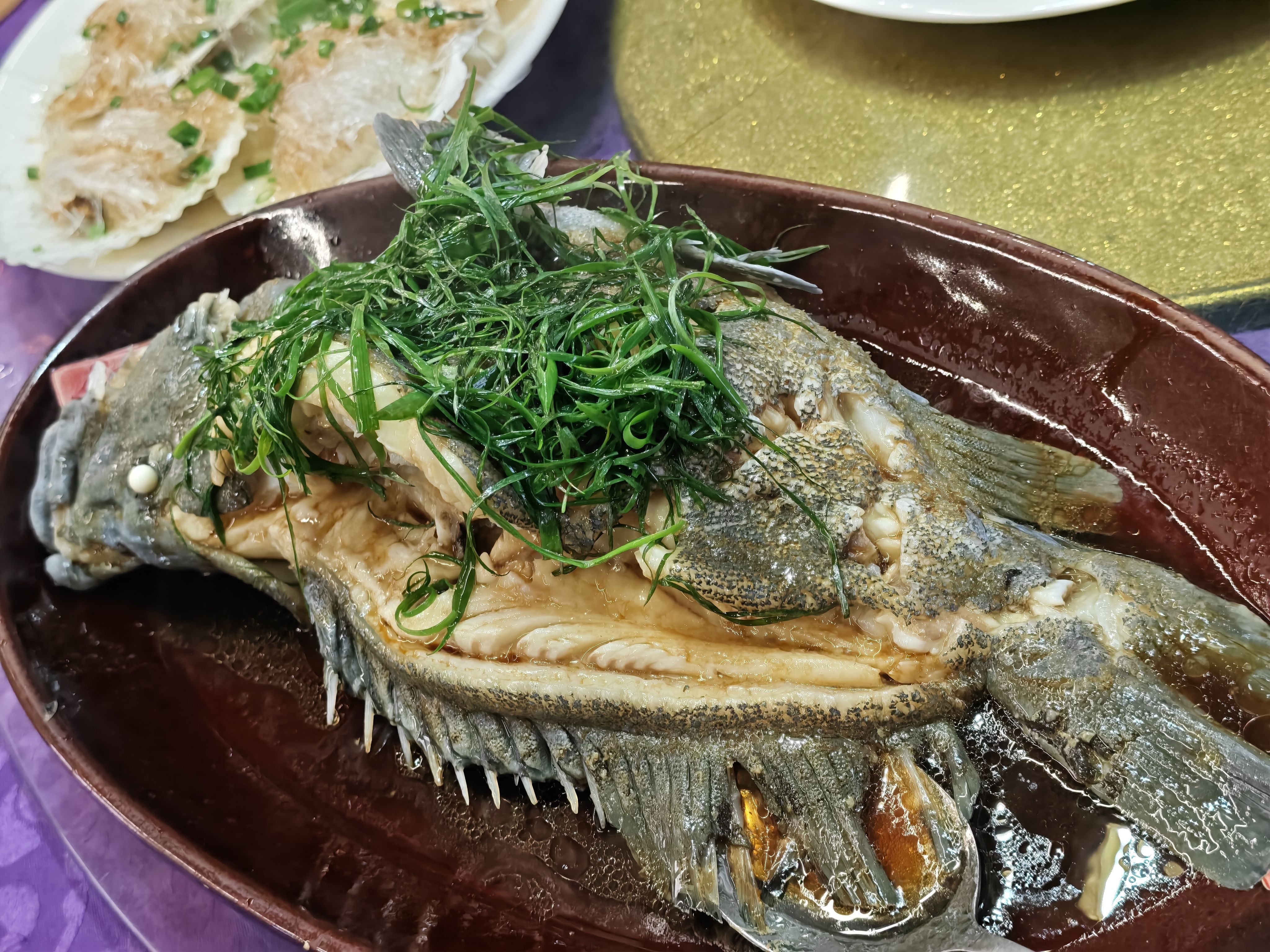 今天中午哥哥和我吃饭🍽️(๑´ڡ`๑)试了一家新开的餐厅 味道不错 (。´∀`)ノ🍴百香果焗鲍鱼真的好好吃 百香果酸甜开胃 鲍鱼肉质嫩滑 有嚼劲😋海鲜粉丝煲也不错 有锅气 调味适中 越吃越香!下午上班开会🥱开小差拿手机倍镜看会议视频上的自己🤫下班回家路上堵车 开启自拍模式 (血轮眼?🤣)回家跑椭圆机😏等哥哥做饭给我吃(⁎⁍̴̛ᴗ⁍̴̛⁎)晚上做了啫啫鲍鱼鸡煲ฅ՞•ﻌ•՞ฅ鸡煲里面还加了皇帝菜 好吃🤩 喝个健康饮料¯﹃¯嘿嘿