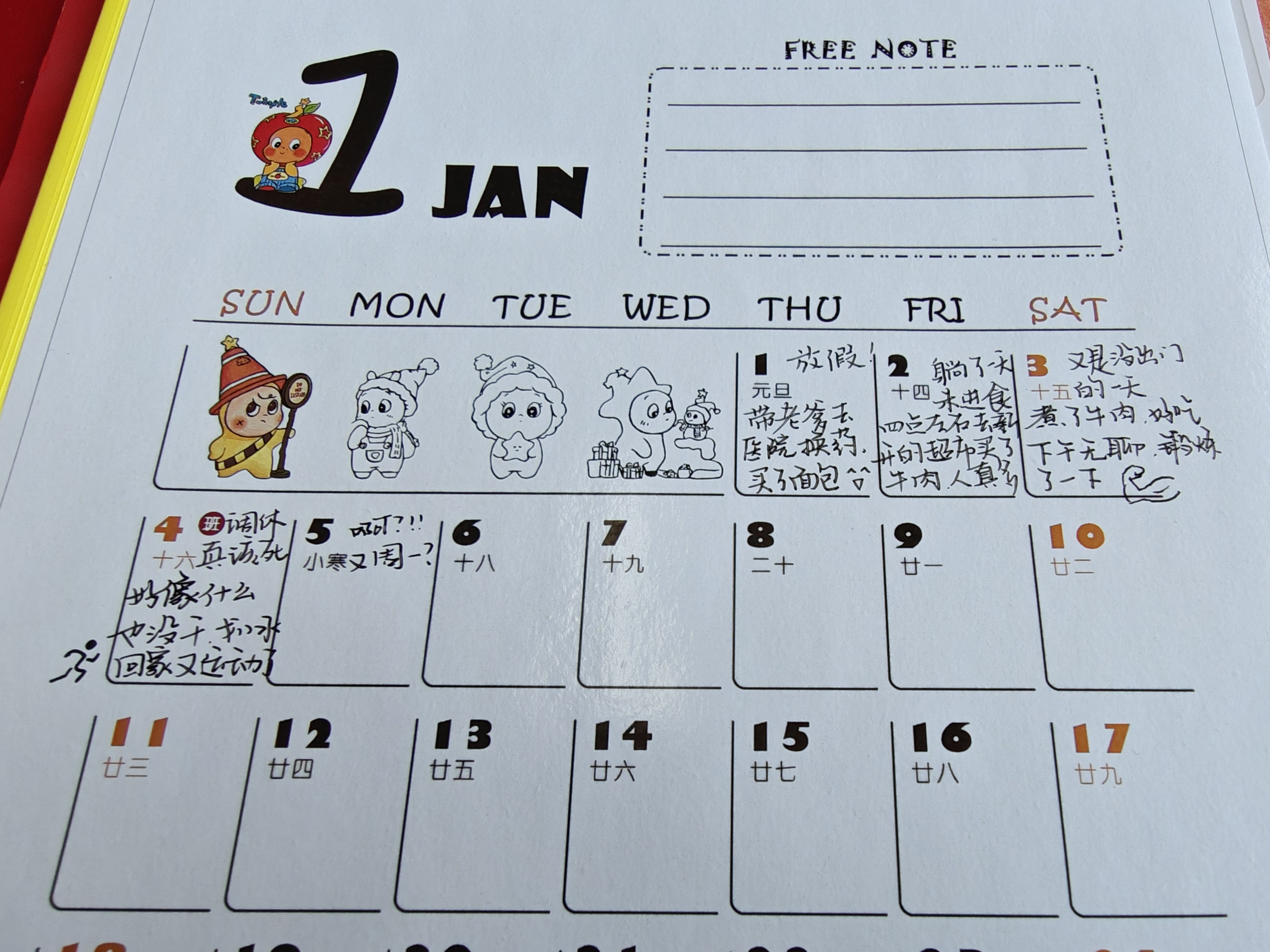 打印了一份日历,日常划水吐槽,除了工作,其他事情都变得有趣起来。