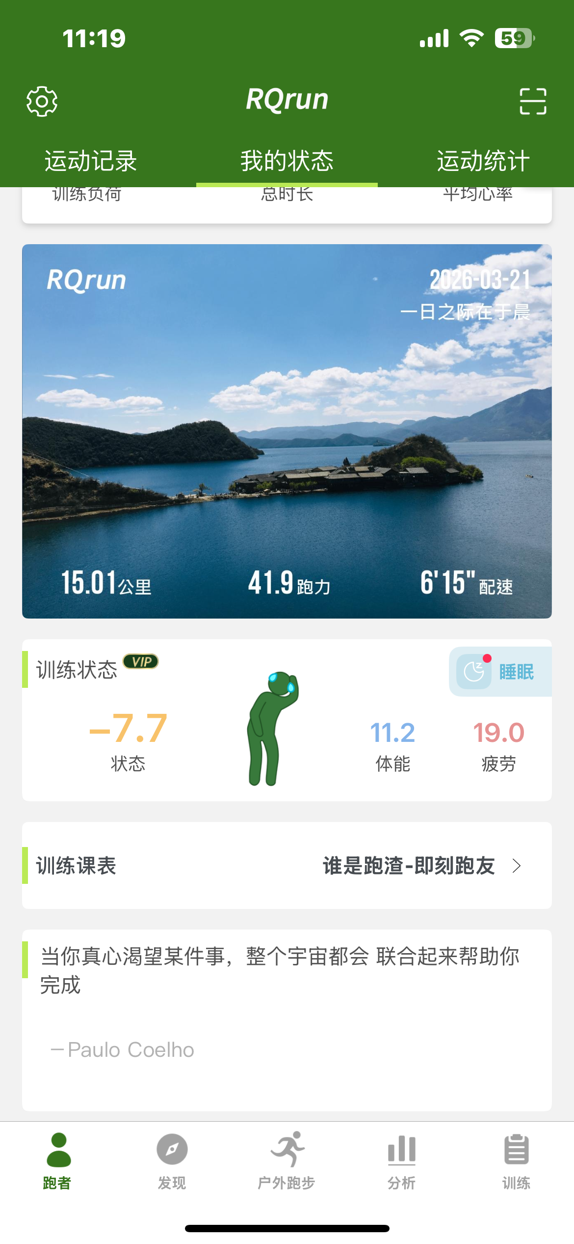 明天还有10k,但都是爬升。加油了。~(>_<)~